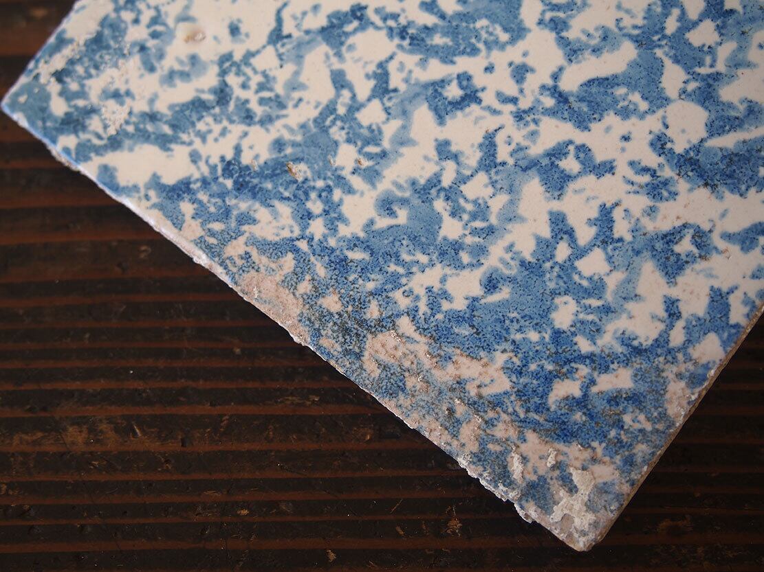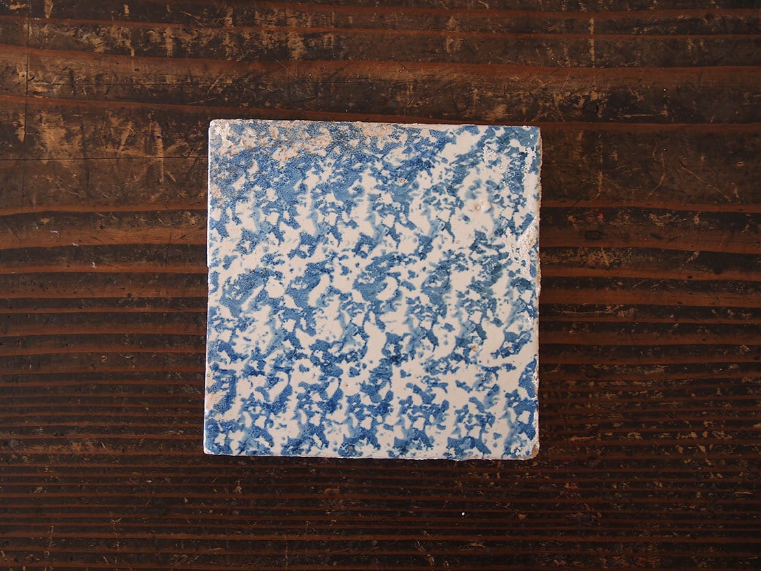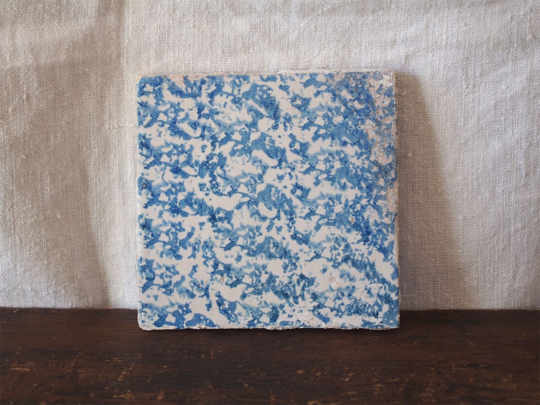 欧州のアンティーク市にて入手。バルセロナを州都とするカタルーニャ地方のタイル。18世紀から19世紀。スポンジウェアのタイルは珍しいと思います。裏にセメントが少し残っています。川砂を固めたような感じで、洗ったりしているうちにポロポロとこぼれ落ちます。 ムラなど雰囲気の良いものです。ディスプレイの他、ミニ盆栽の台などに利用してもよいでしょう。 *盆栽は商品には含まれません。