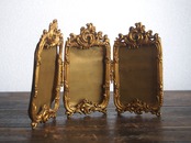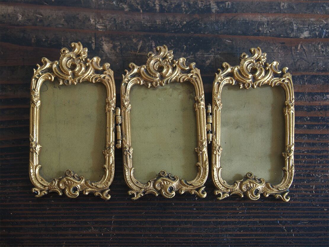 3連フレーム レリーフ 真鍮 ブロンズ ロココ調 ロカイユ模様 フォトフレーム 額縁 インテリア ヨーロッパ アンティーク/K190