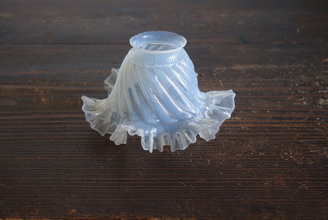 螺旋模様のオパールガラス フリルガラス ランプシェード電笠 直径16.2cm 大正ロマン オパールセント ヨーロッパ フランスアンティーク/K221
