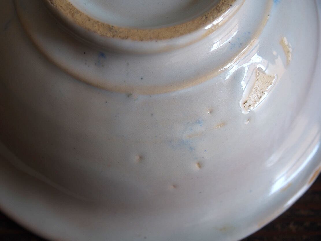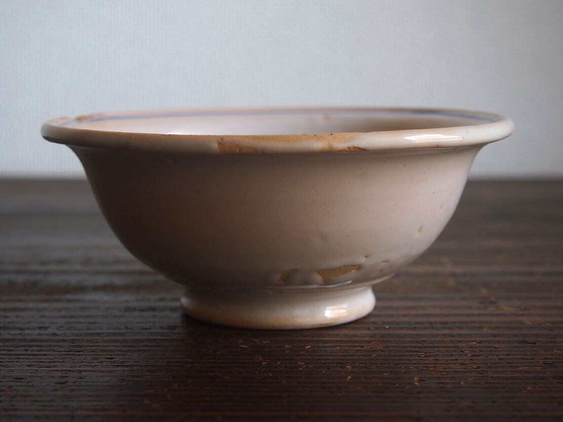 ヨーロッパの蚤の市で入手。19世紀。中世からスペインの重要な貿易都市として栄えたバレンシア州のマニセス(マニゼス)陶器。今まで数点このボウルを扱ってきましたが、この小さなサイズは初めての入手です。黄味の土にうっすら青みを帯びた釉薬。欠けや釉薬のハゲ、ホツなどあります。コレクション、実用にもいかがでしょう。