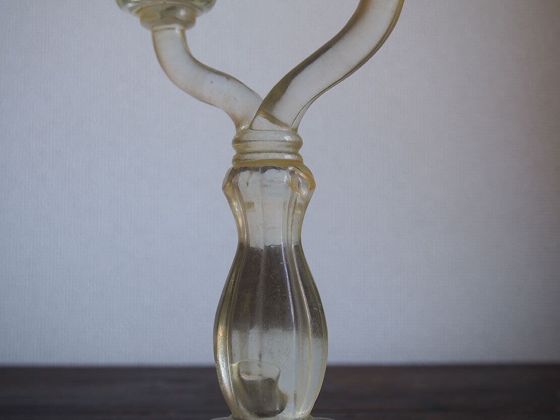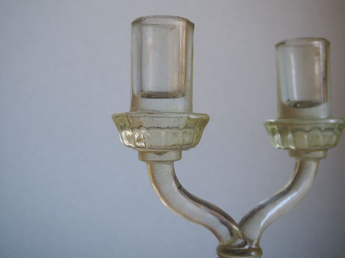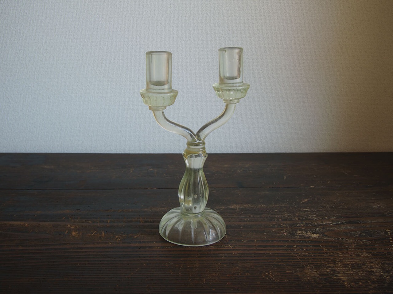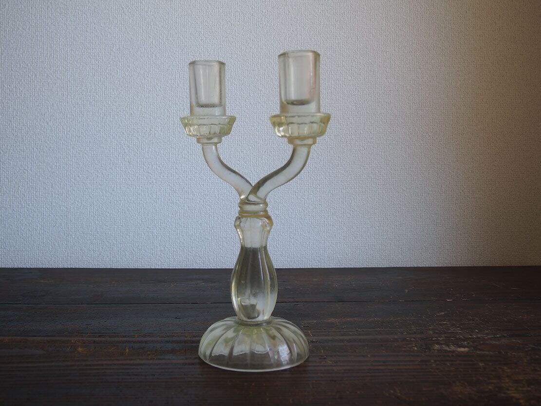 うっすら黄色のガラス キャンドルスタンド 燭台 キャンドルホルダー プレスガラス キャンドルスティック ヨーロッパ アンティーク/K222