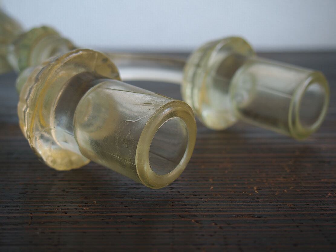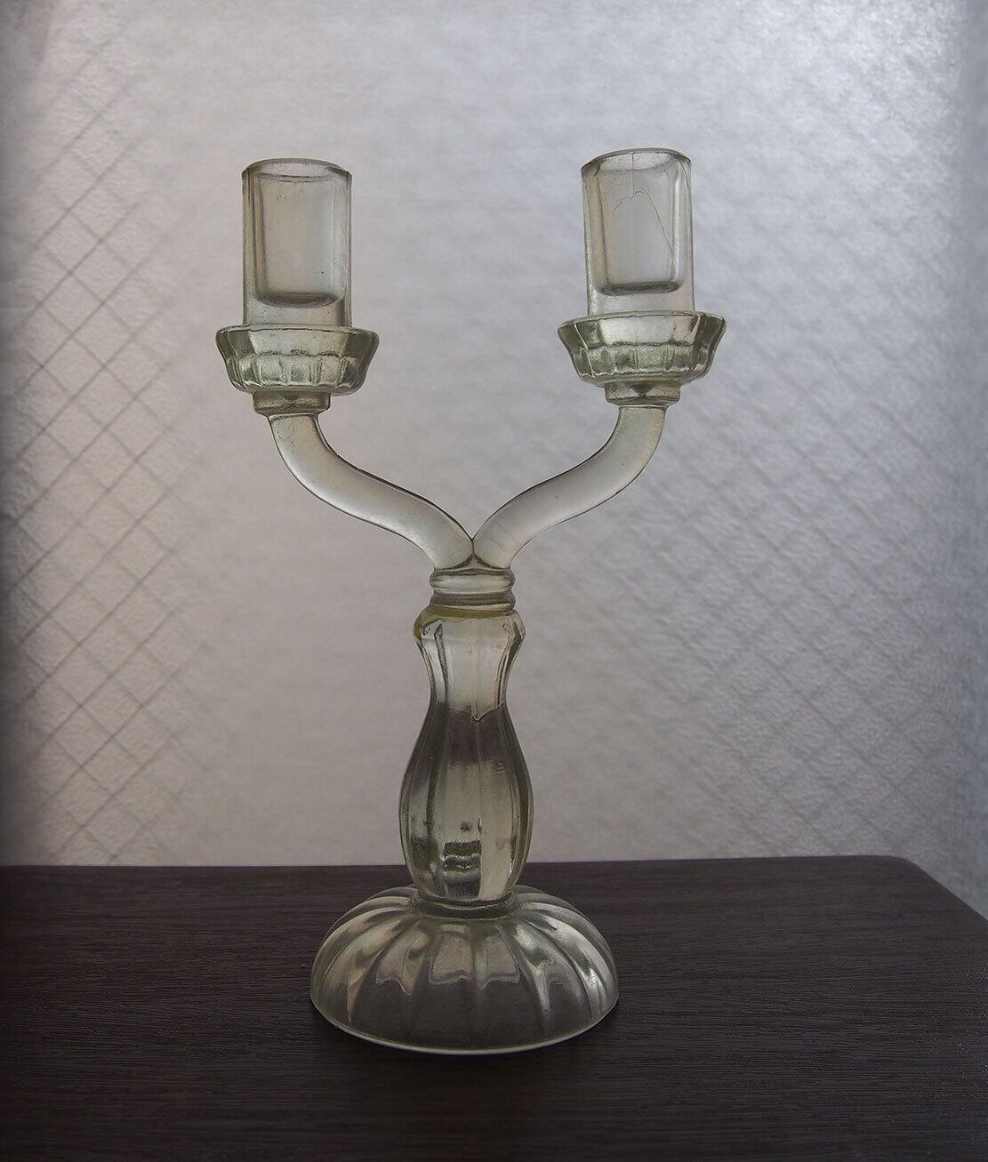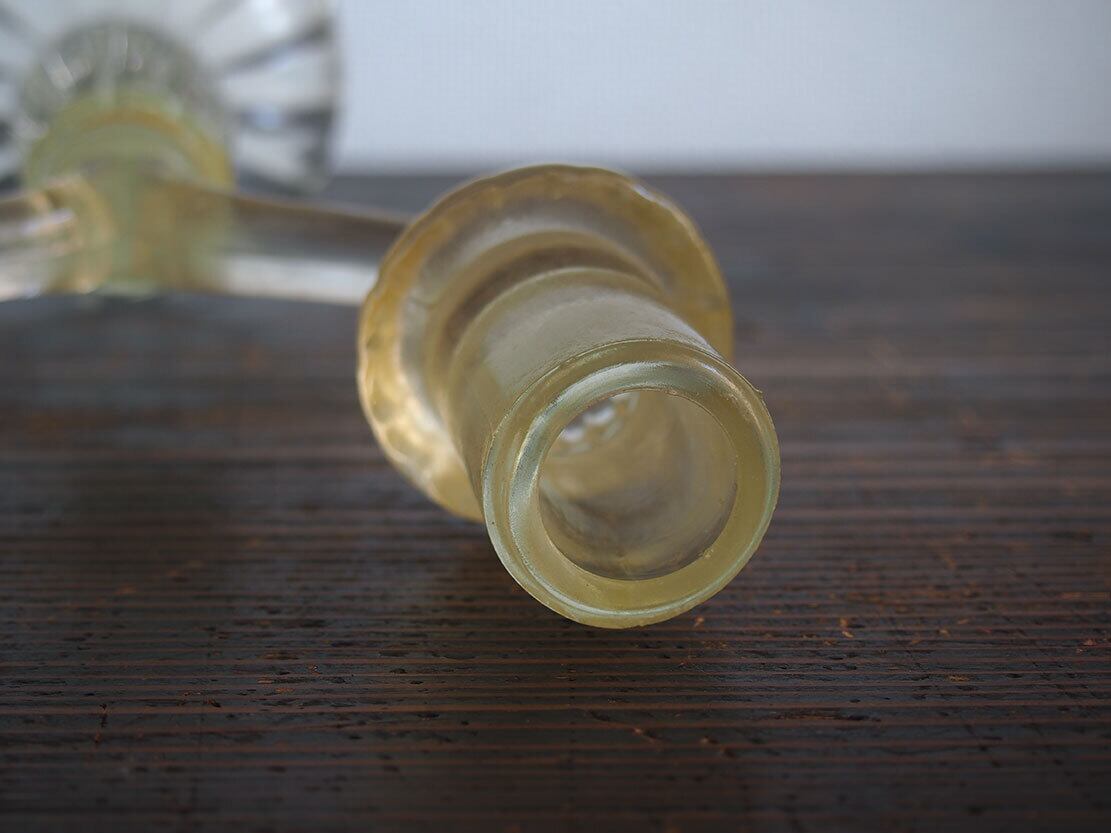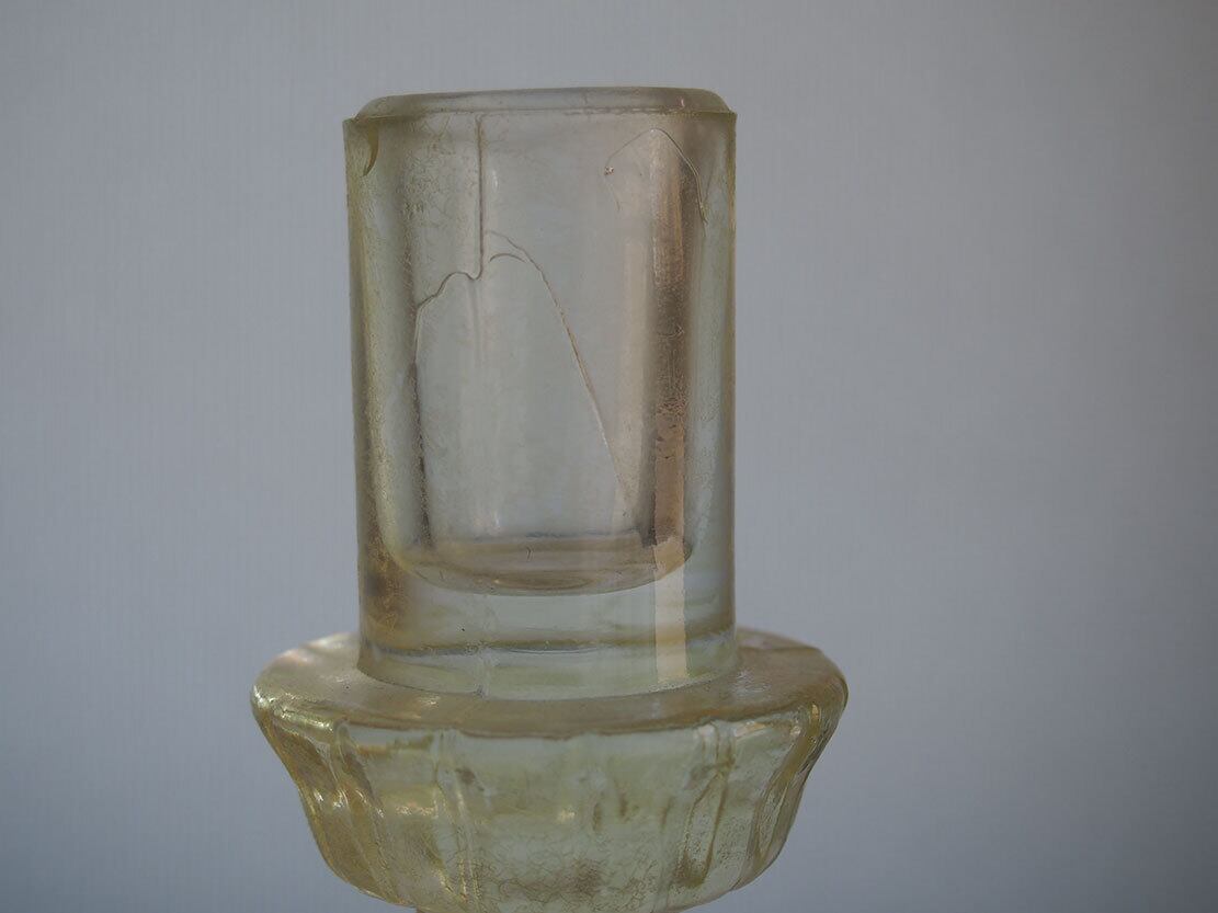 うっすら黄色のガラス キャンドルスタンド 燭台 キャンドルホルダー プレスガラス キャンドルスティック ヨーロッパ アンティーク/K222