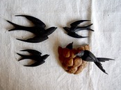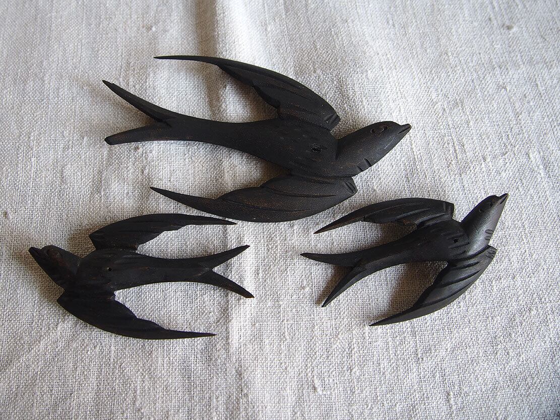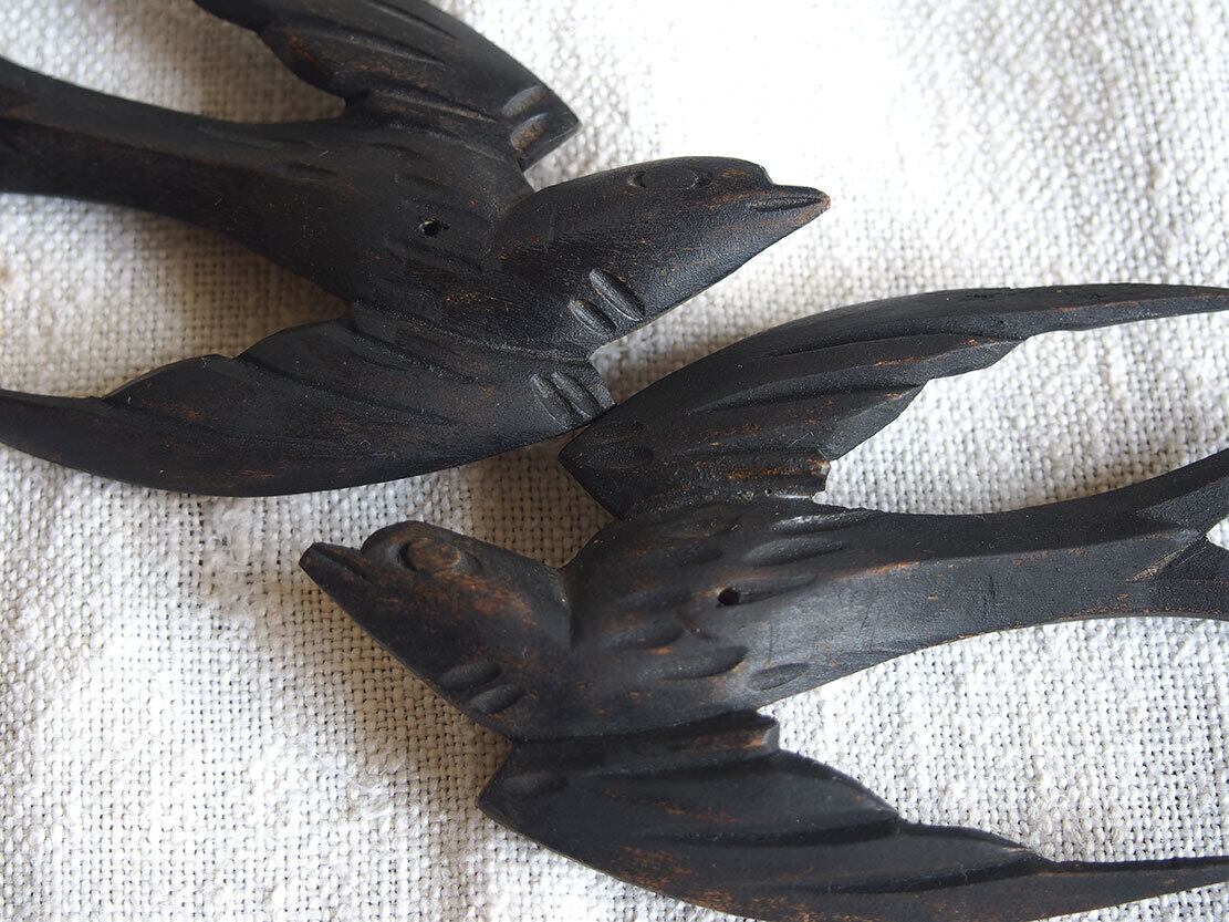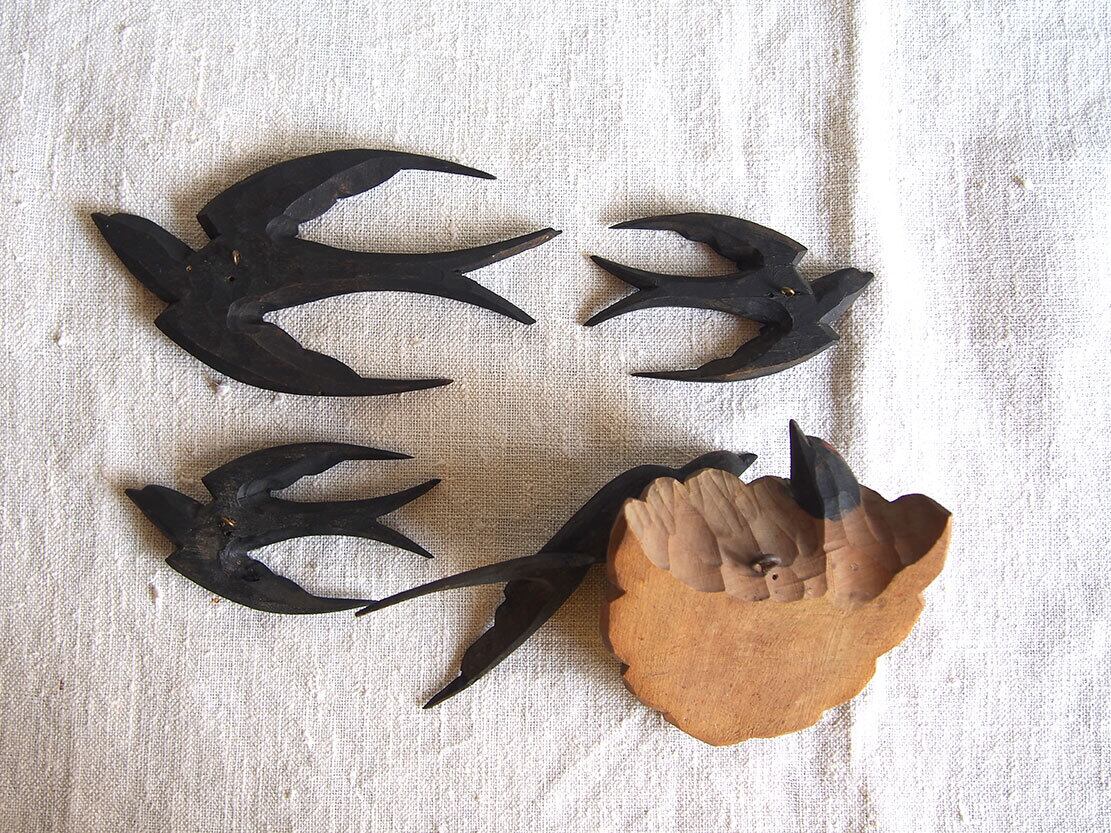 木彫りのツバメ 壁飾り オーナメント4羽と巣 燕 ヨーロッパ シャビーシック 渡り鳥 小鳥 欧州 蚤の市 アンティーク ヴィンテージ/K244