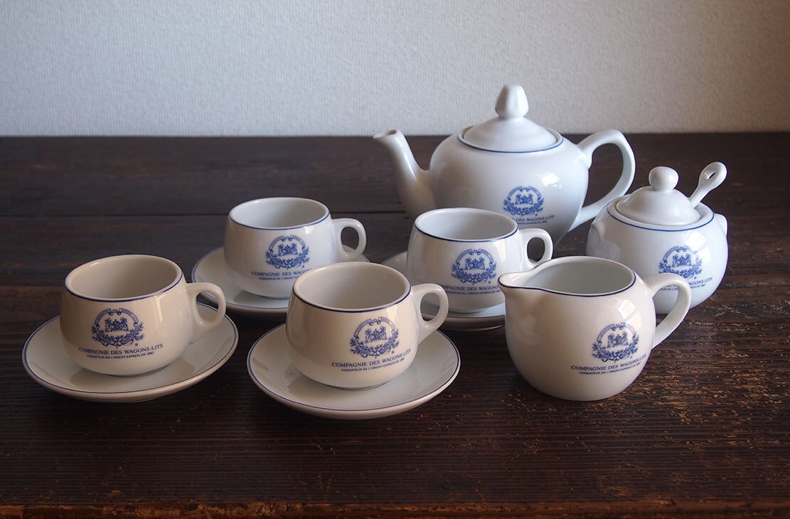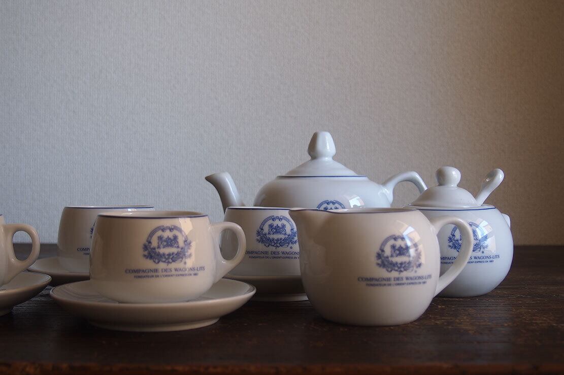 オリエント急行100周年記念 カップ&ソーサー4組 ティーポット+シュガー+ミルクポット 陶器 1980年代 ヴィンテージ/K235