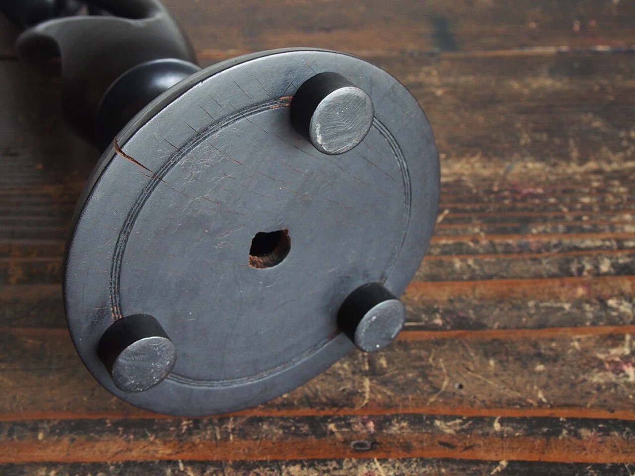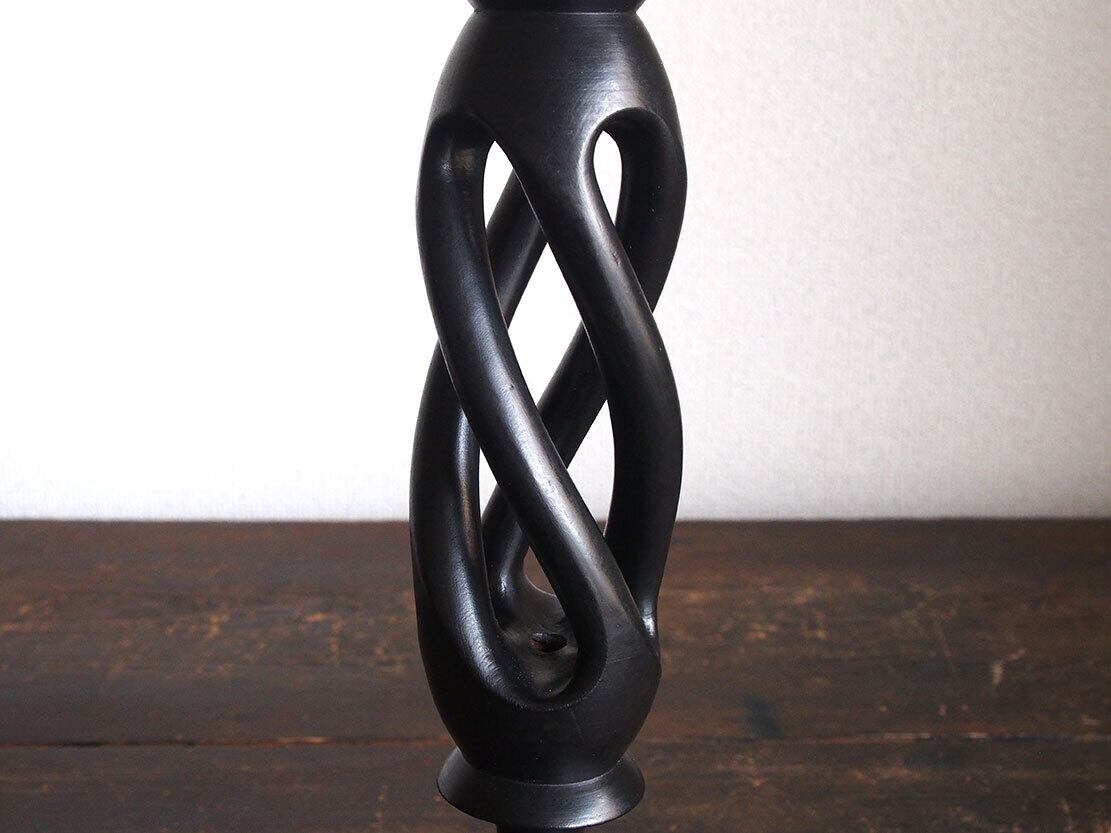 ヨーロッパのアンティーク市にて入手、1930年代ぐらい?。螺旋状のデザインはバーリーツイストと呼ばれ17世紀に流行して19世紀に再び脚光をあびました。穴の直径11mm、下まで貫通しています。ご覧のように経年と乾燥による薄いヒビがあります、写真参照。