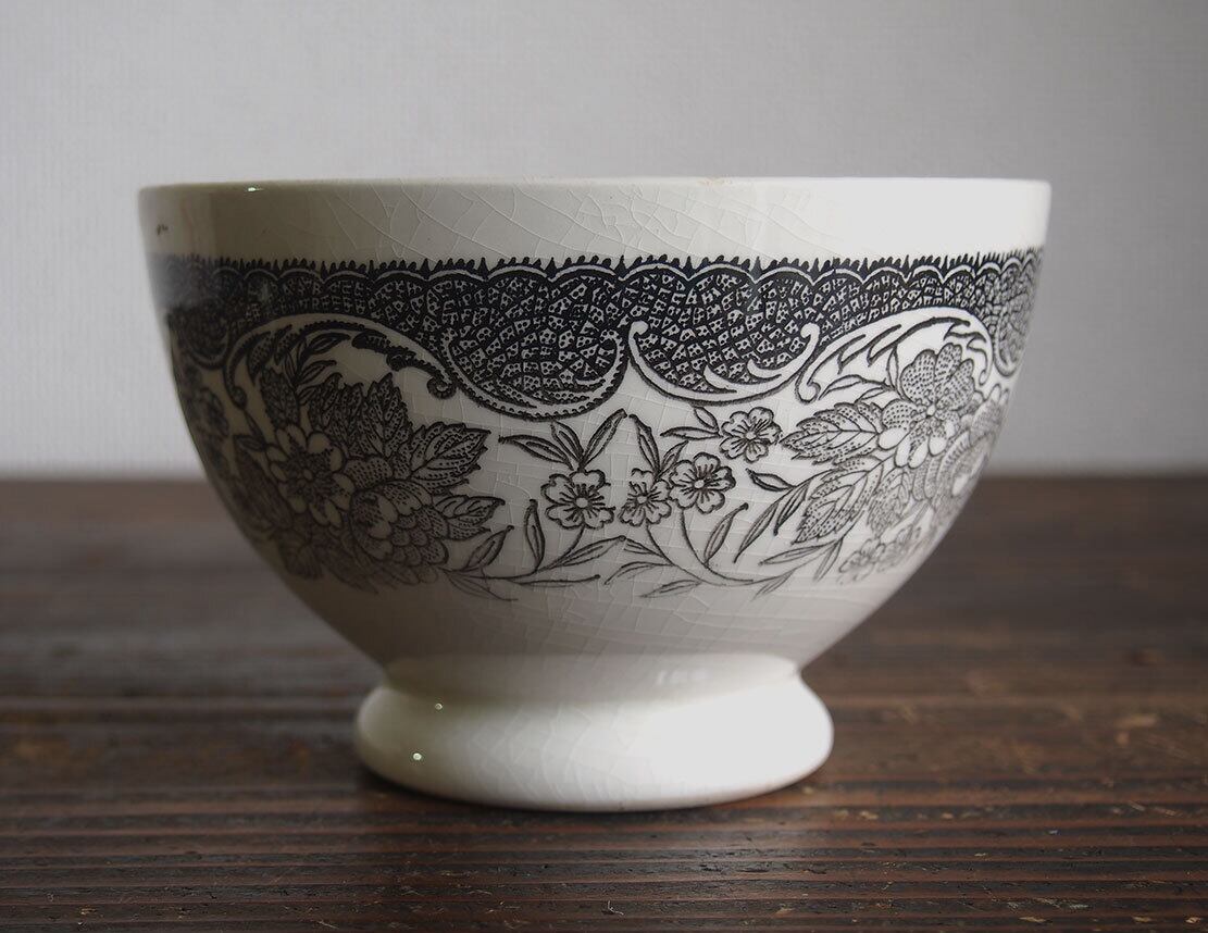 大きめヴィクトリアン様式 グリザイユ カフェオレボウル 直径13.7cm スペイン古陶 1900年 トランスファーウエア 南欧 工藝 アンティーク/K280