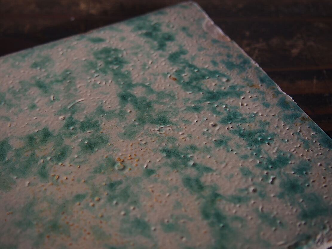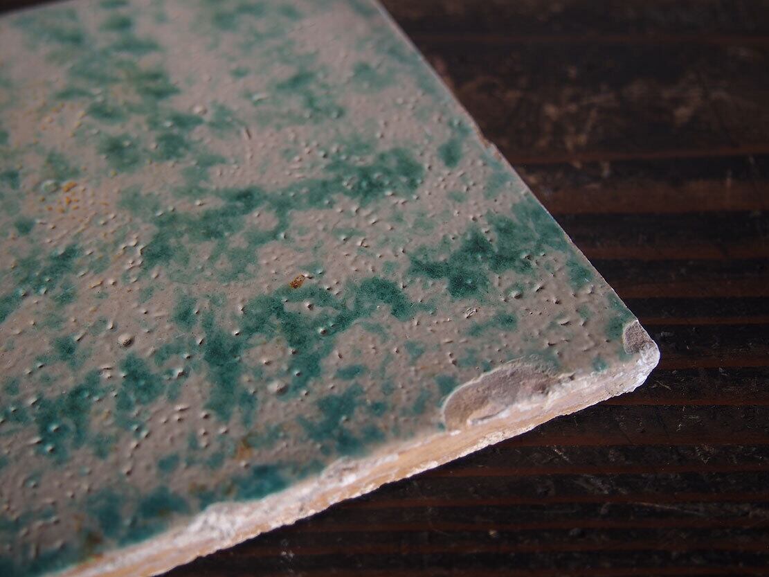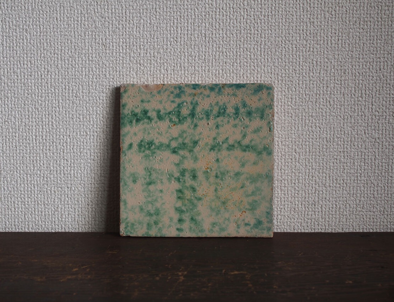 緑釉薬 スポンジウェア スペイン 古いタイル 13.4cm×13.4cm 18世紀 カタルーニャ スペインデルフト スペイン古陶 アンティーク/K283