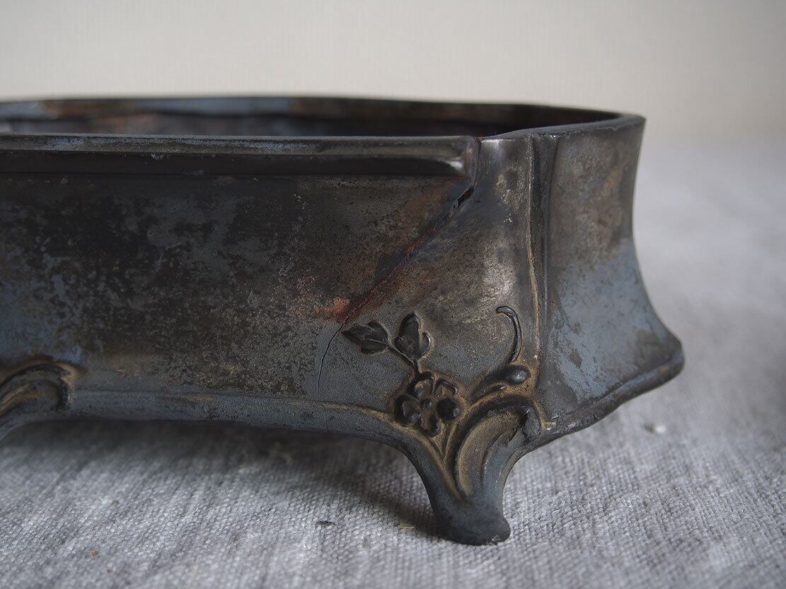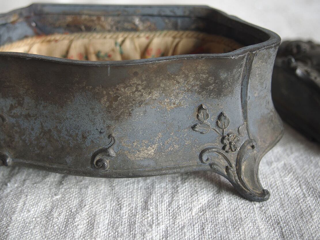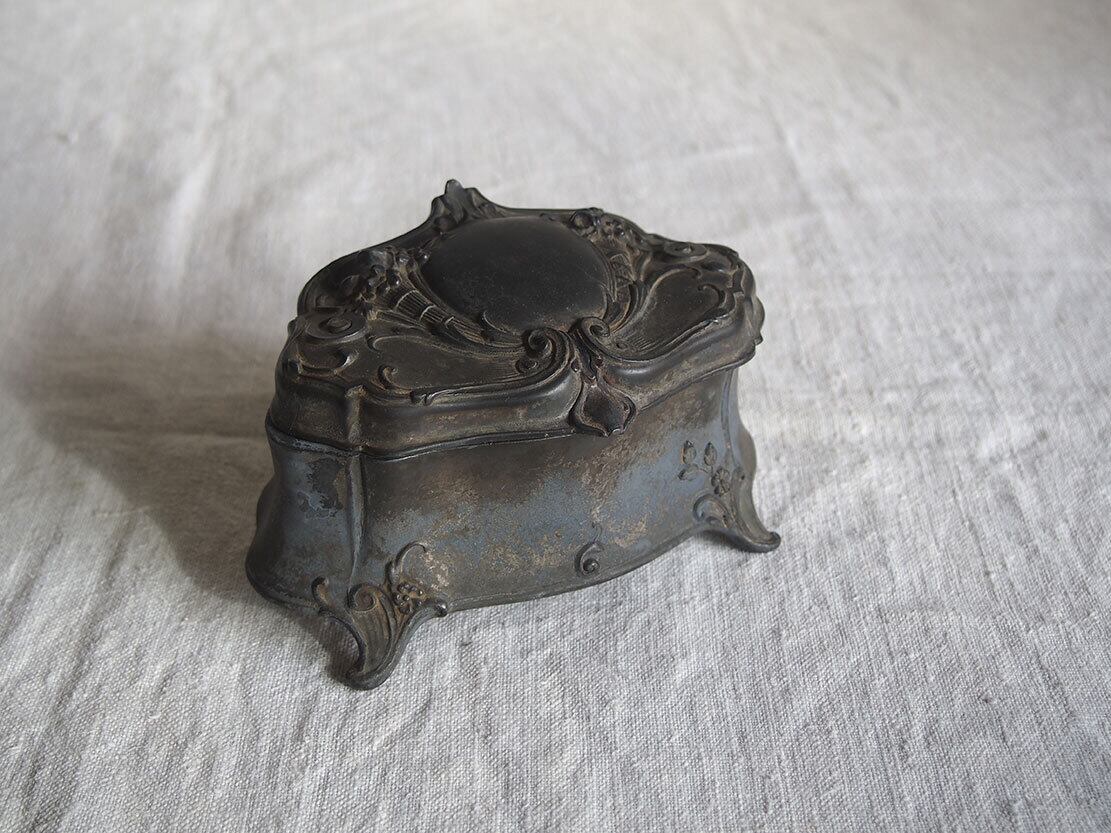 ヴィクトリアン様式 アール・ヌーヴォー ピューター 宝石箱 フレンチ ジュエリーケース 小物入れ 家具 デコレーション アンティーク/K278