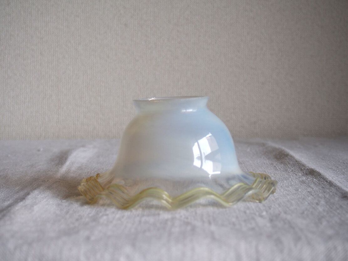 オパールガラス フリルガラス ランプシェード電笠 直径14.6cm 大正ロマン オパールセント ヨーロッパ フランスアンティーク/K297