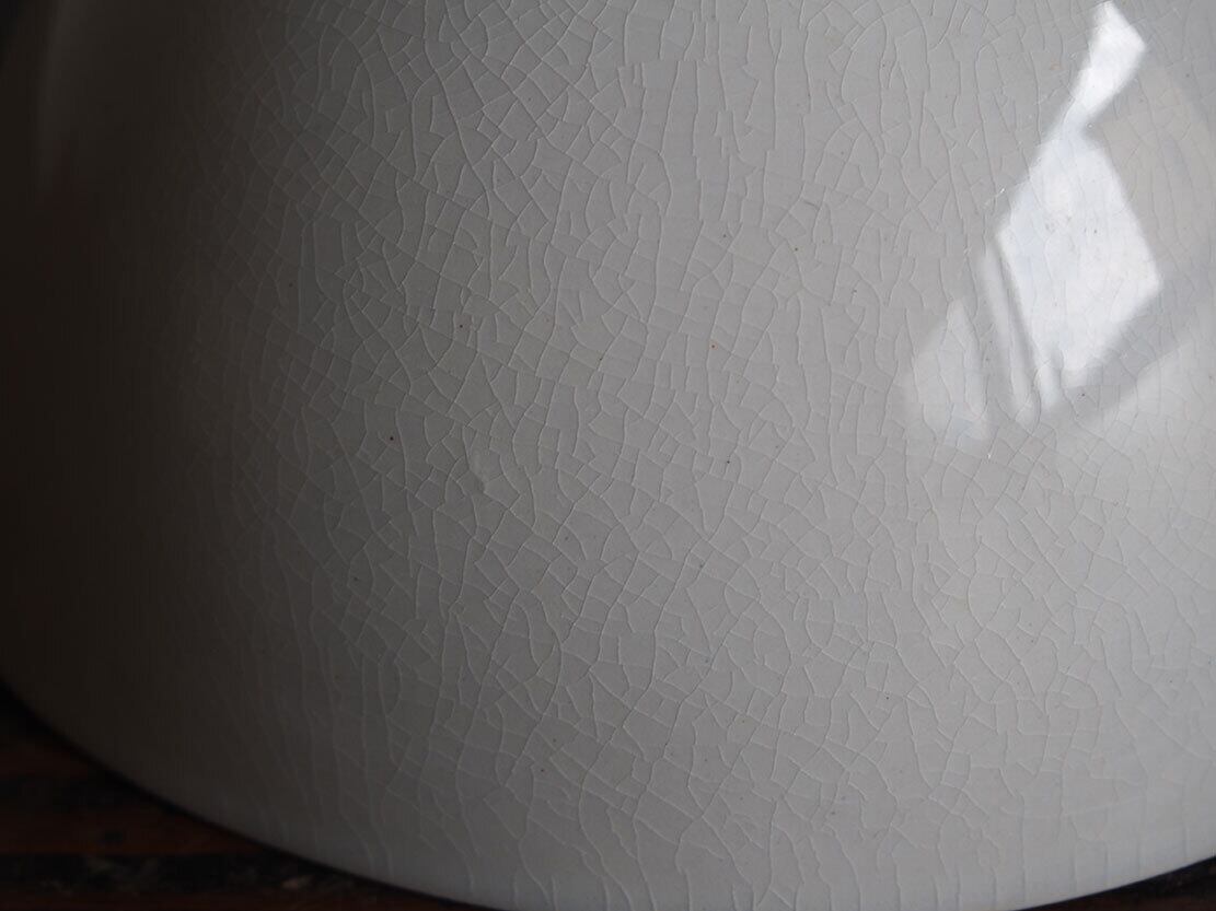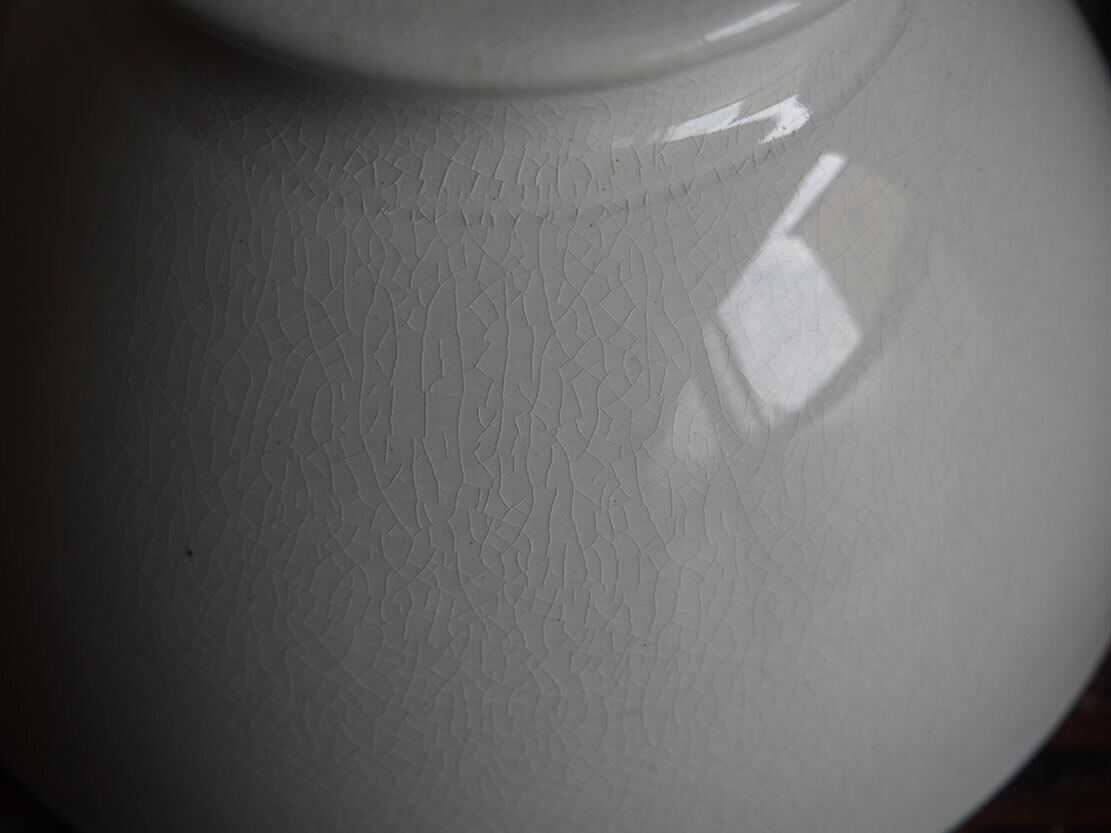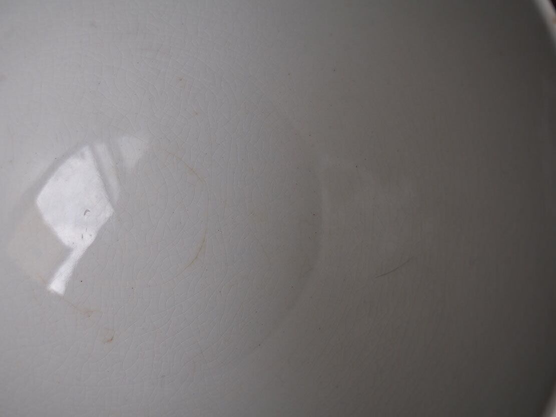 ヨーロッパの蚤の市で入手。1930年代ぐらいに作られた物だと思われます。深さ6.8cm。特に目立つダメージはありません、古いものですが良い状態のボウルです。うっすら青味を帯びた釉薬、表面の細かな貫入が美しい。コレクション、参考資料等にもいかがでしょう。