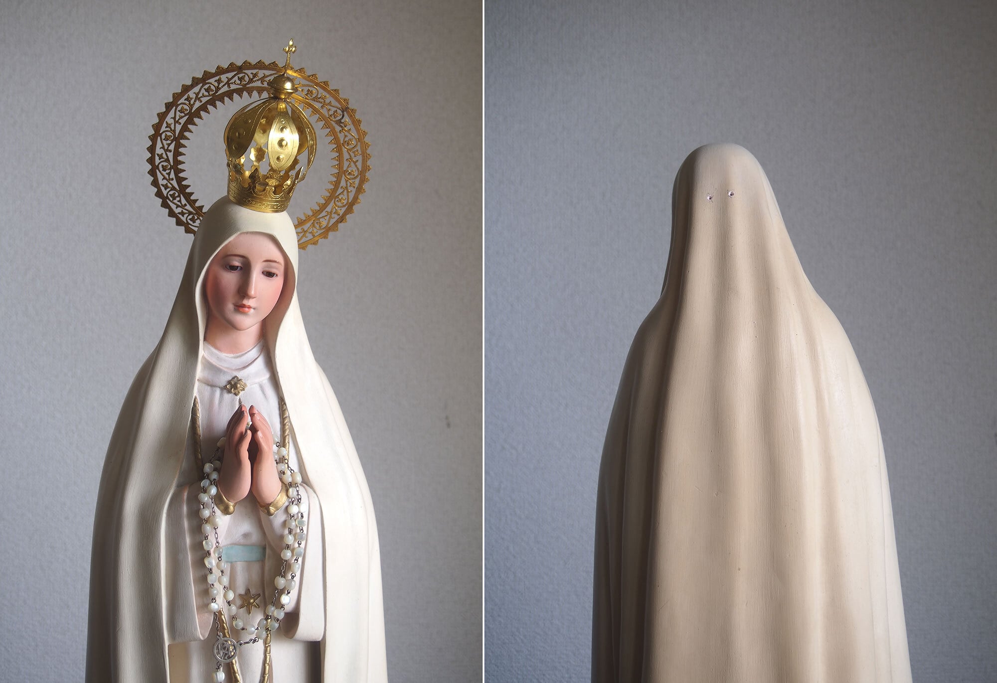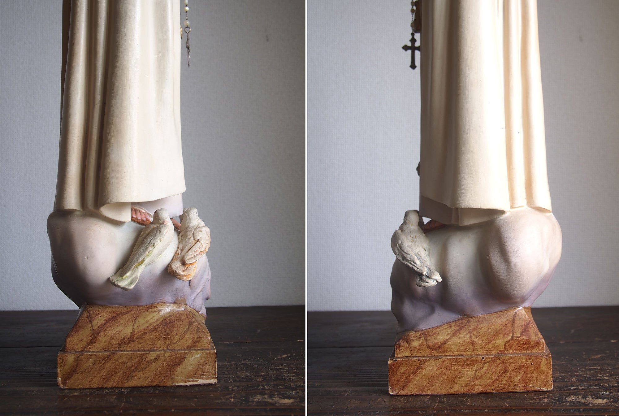 白いローブのファティマの聖母マリア像 グラスアイ高69cm カトリック 宗教彫刻 ポルトガル 聖地 1950年 ヴィンテージ アンティーク/K149