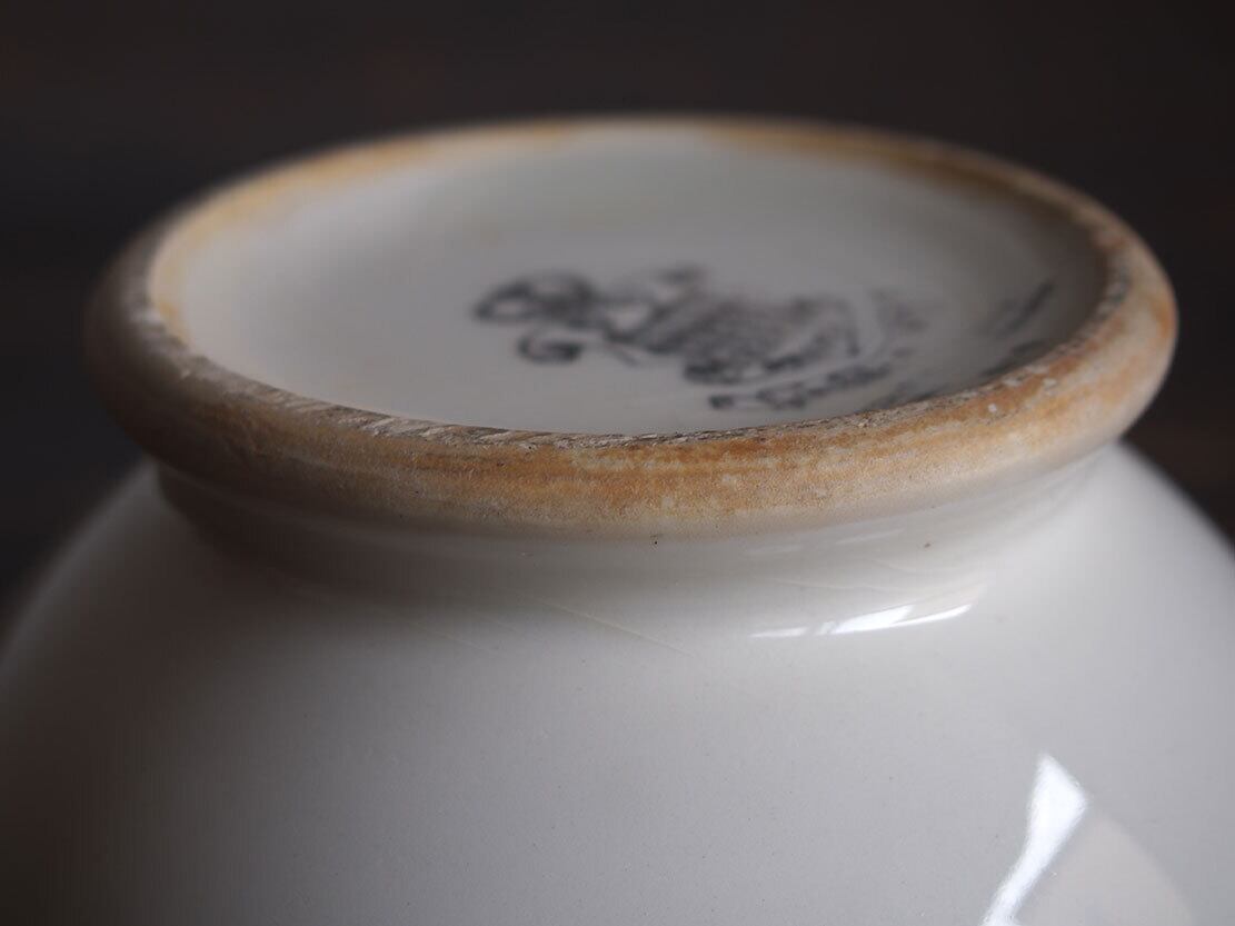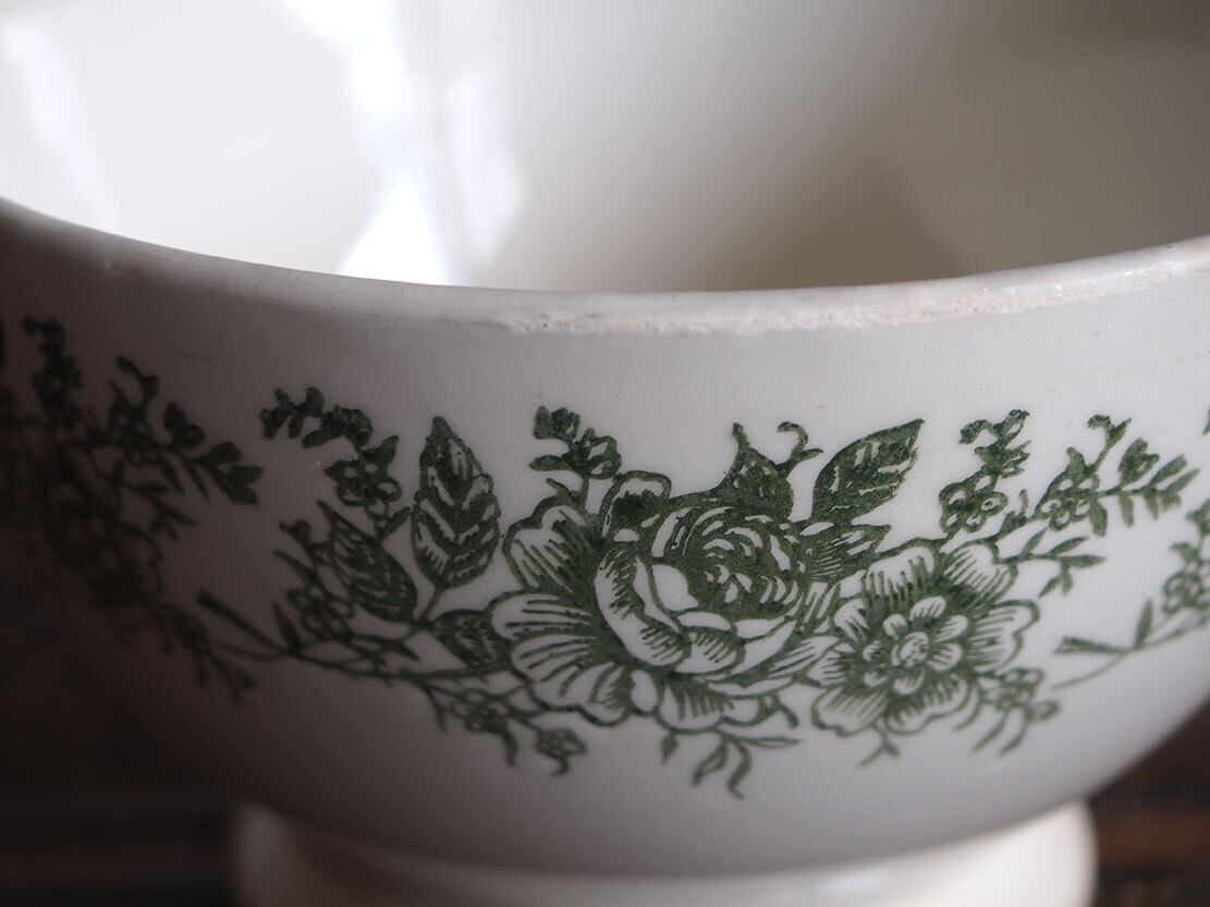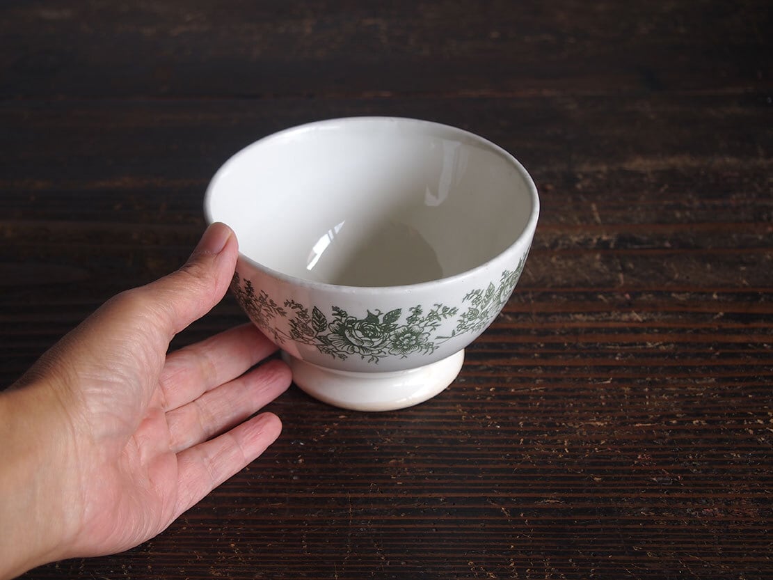 緑 薔薇の紋様 カフェオレボウル 直径13.2cm スペイン古陶 トランスファーウエア 南欧 工藝 アンティーク/K336