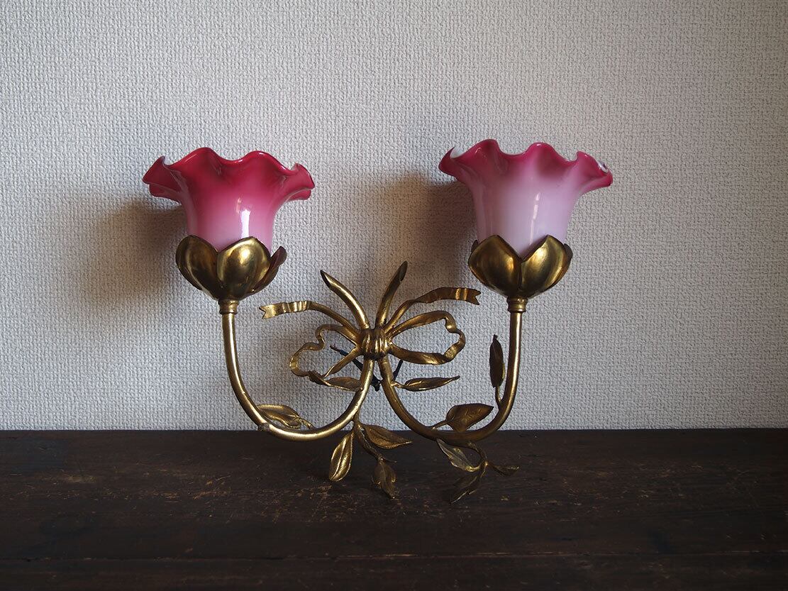 花束のデザイン ピンクのガラスシェード ウォールライト 照明 ヨーロッパ レトロ アンティーク ヴィンテージ/K313