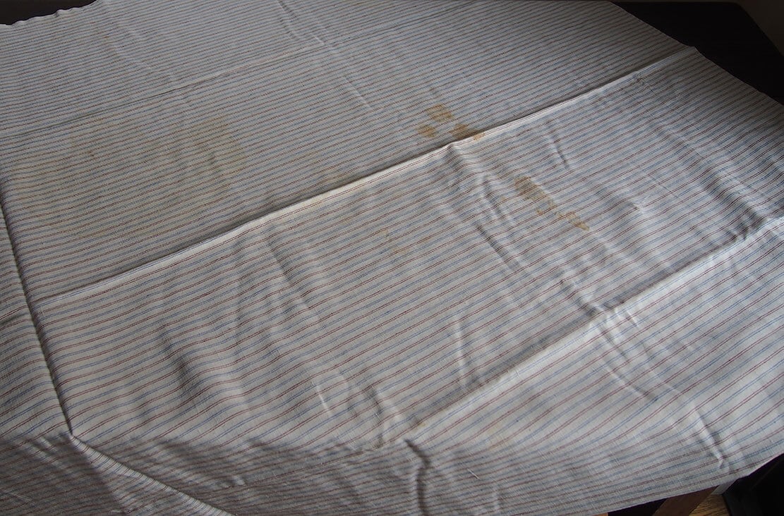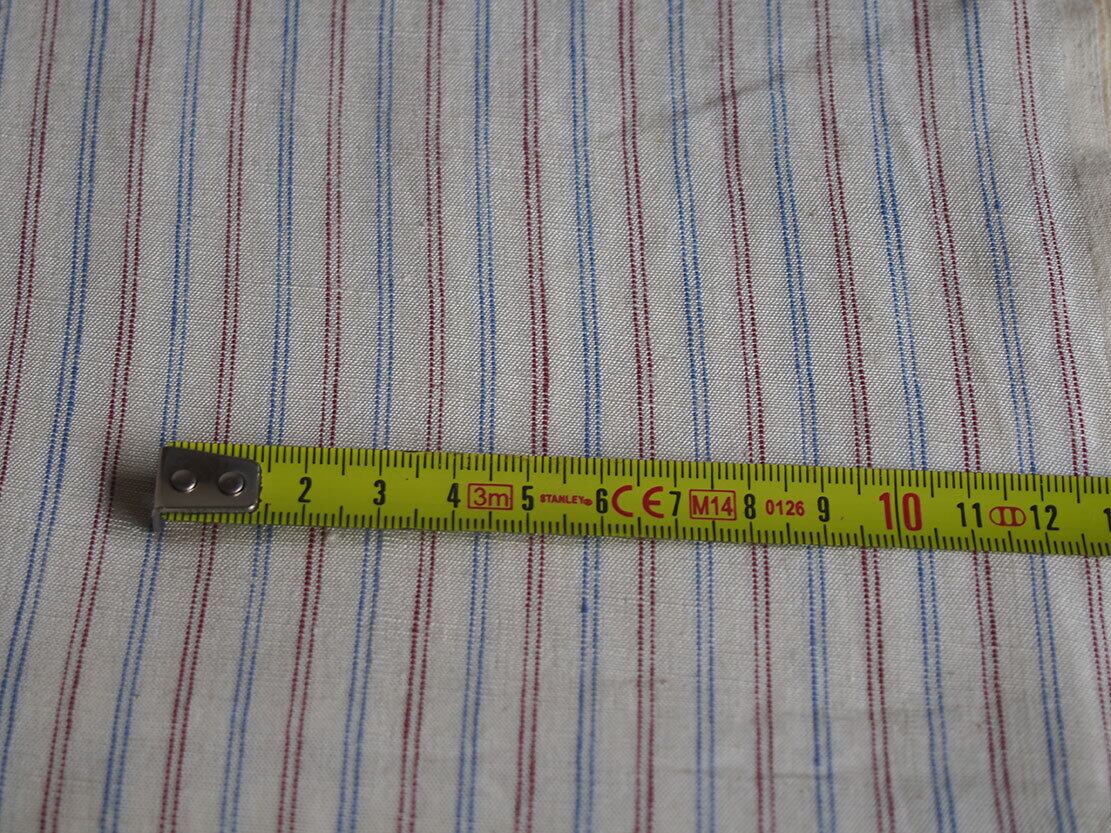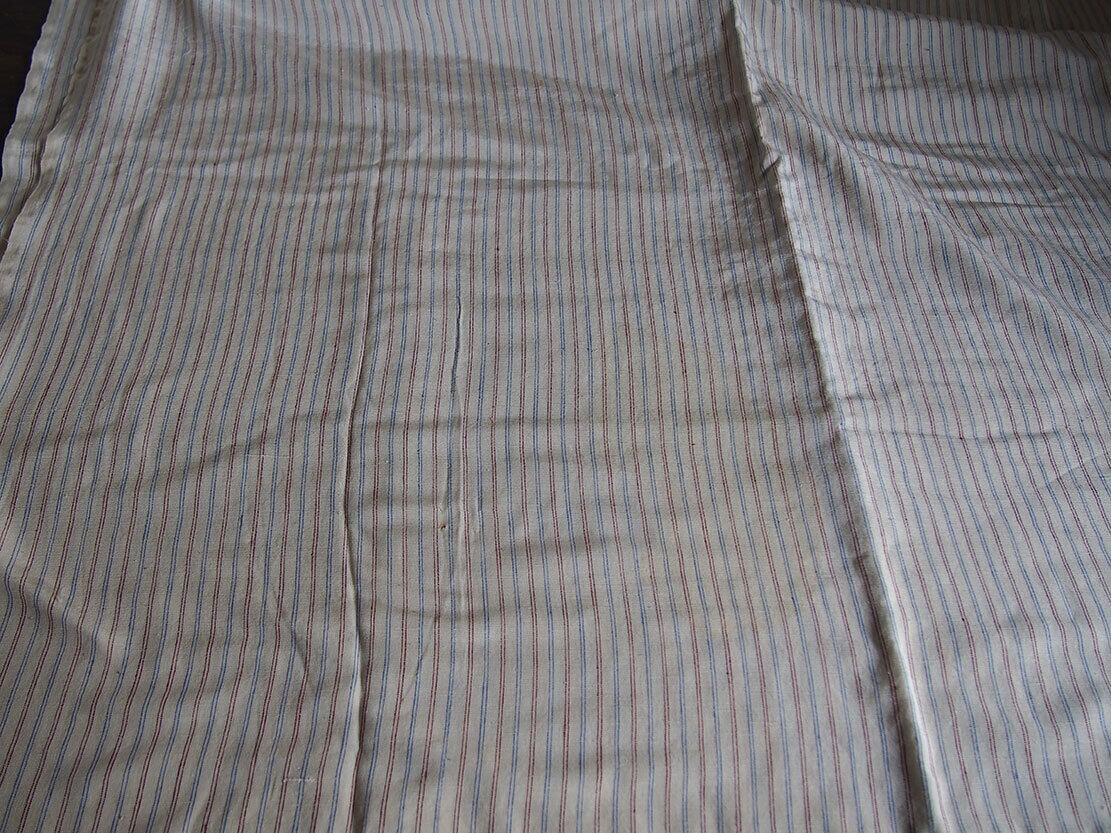 ヨーロッパのアンティーク市にて入手、1960年ぐらい?。長い間かけて収集したヴィンテージファブリックの一部を出品します。青×ワインの2色のストライプ生地、未使用品。古い生地です、保管中に濡れてしまったのでしょうか、ご覧のようにシミがが残っています、未洗濯。インテリア、衣類、ドールの衣装などの小物の製作に。デザイン、縫製の資料などにも。アンティーク衣装、ファブリックを得意としています、他の商品も是非ご覧ください。