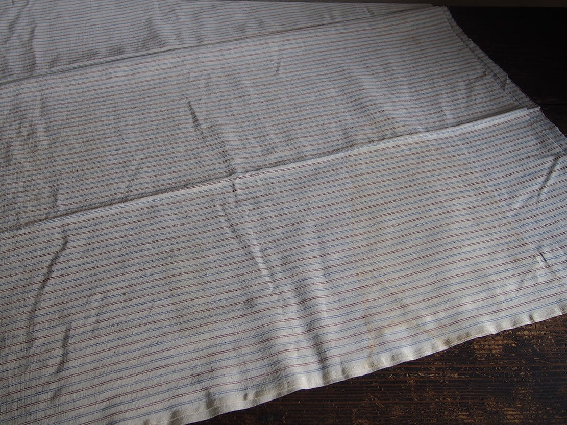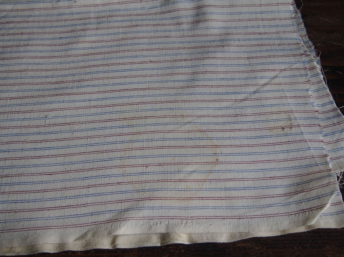 青×ワイン 細ストライプ ヴィスコース 生地 幅97cm×325cm ファブリック 縞 ヨーロッパ 1950年 ヴィンテージ アンティーク ヨーロッパ/K305