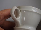 ヨーロッパの蚤の市で入手。1910年代ぐらい。おそらくスペイン、セビージャの陶器。すっぽり手になじむ小ぶりのカップ。わずかに青味を帯びた釉薬、ハンドルの上に薄いヘアラインがあります、写真でご確認いただけます。コレクション、実用にもいかがでしょう。