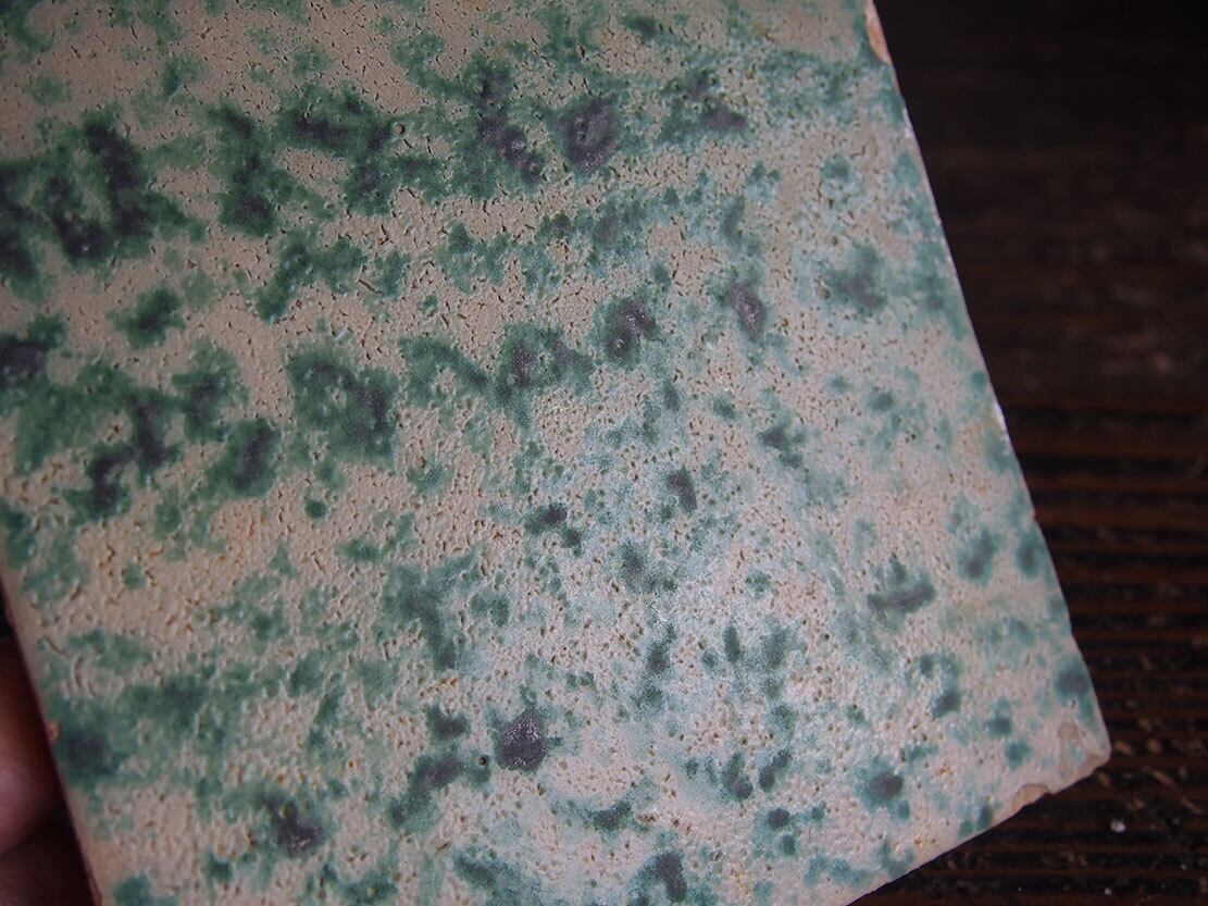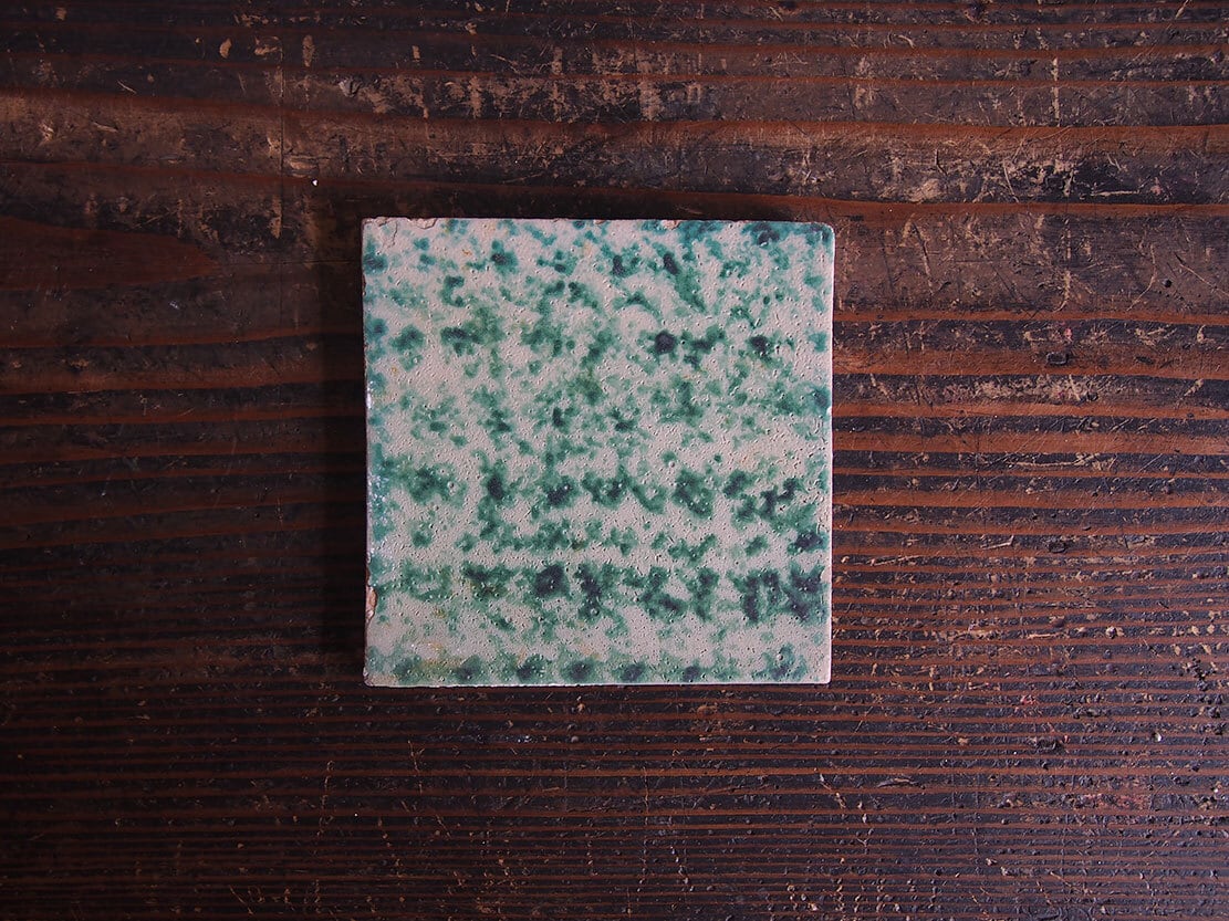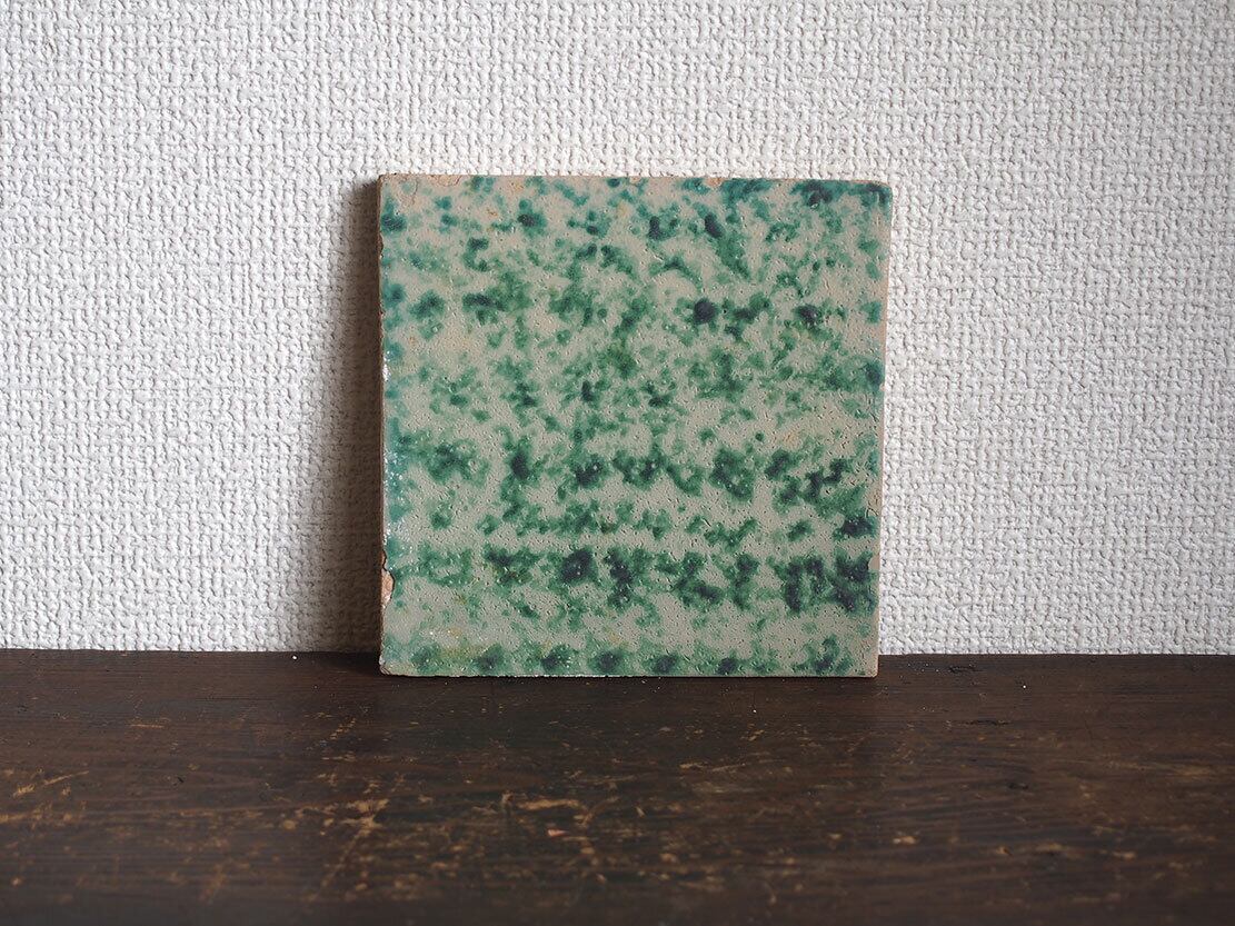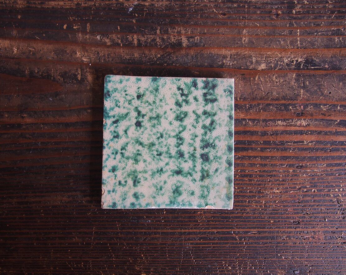緑釉薬 スポンジウェア スペイン 古いタイル 13.4cm×13.3cm 18世紀 カタルーニャ スペインデルフト スペイン古陶 アンティーク/K310