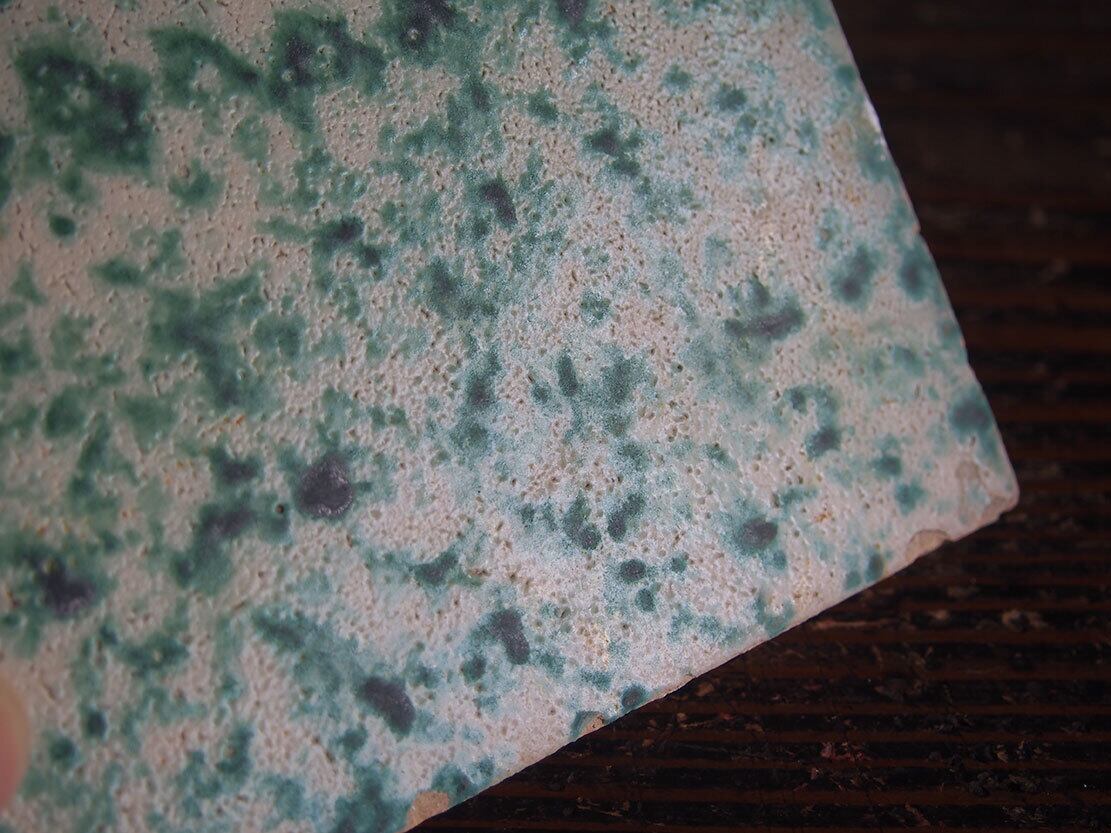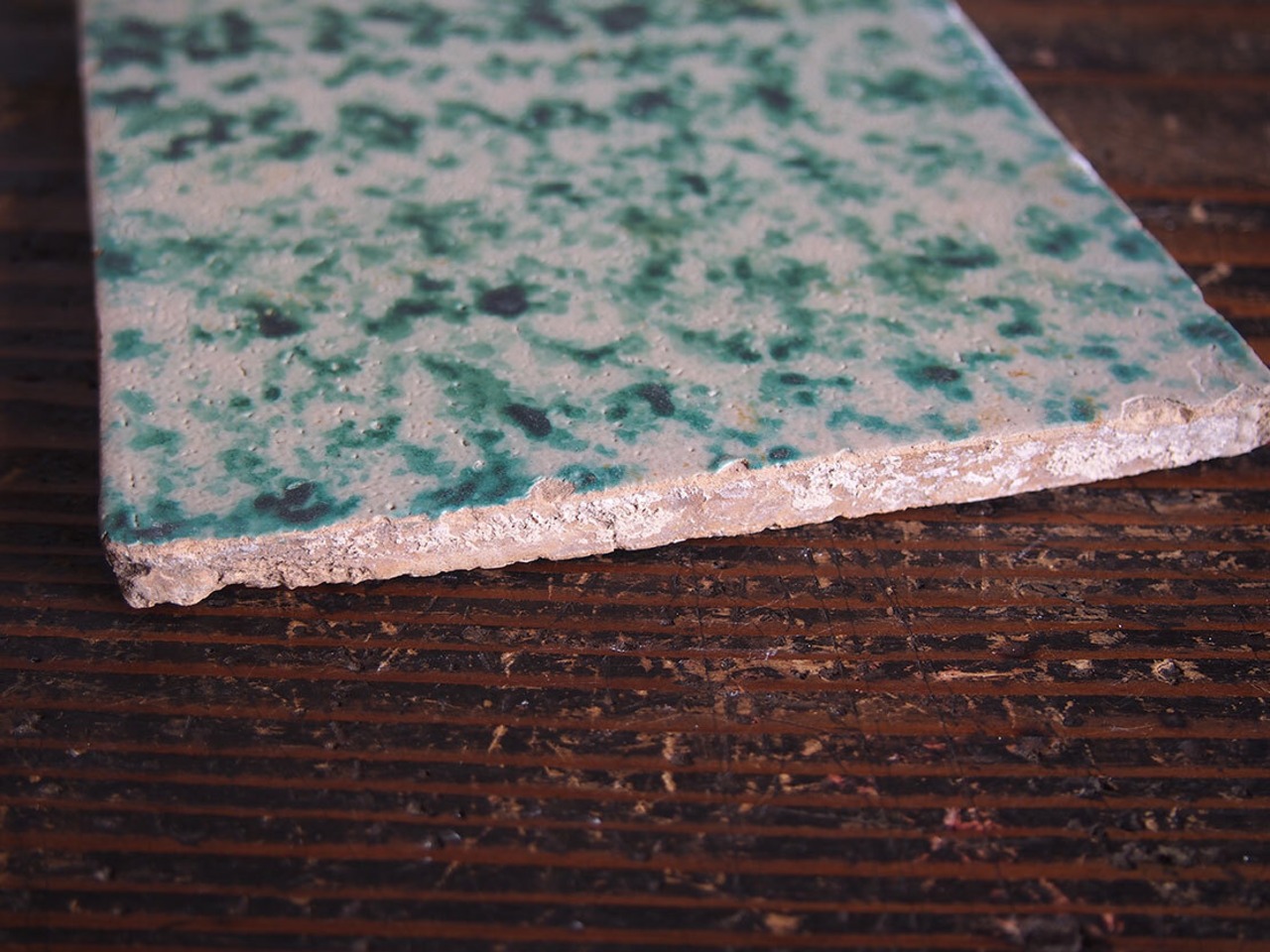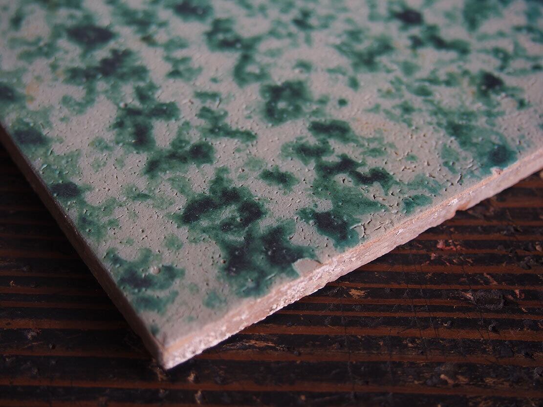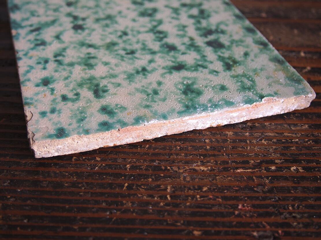 緑釉薬 スポンジウェア スペイン 古いタイル 13.4cm×13.3cm 18世紀 カタルーニャ スペインデルフト スペイン古陶 アンティーク/K310