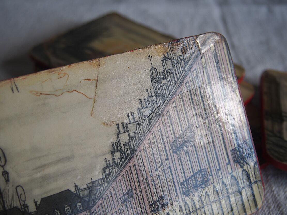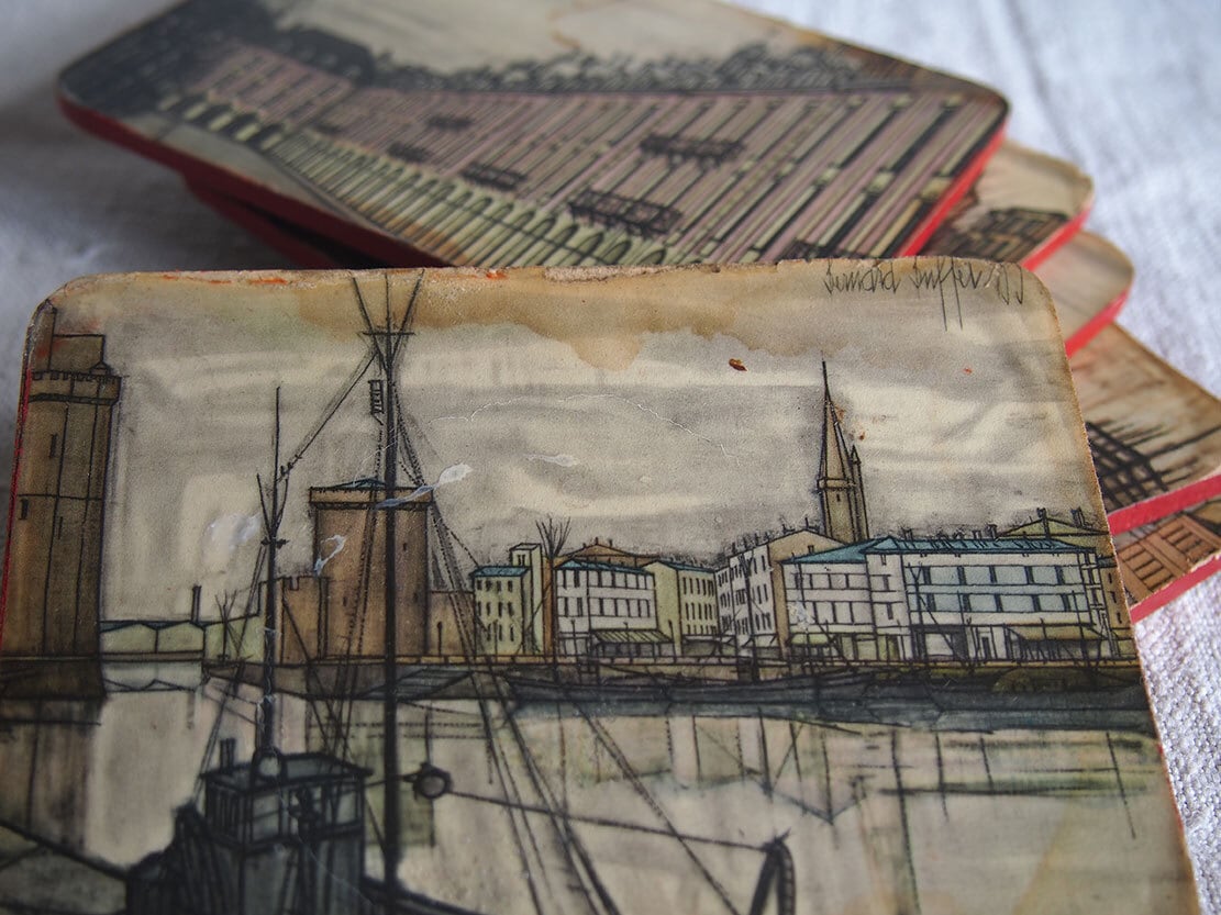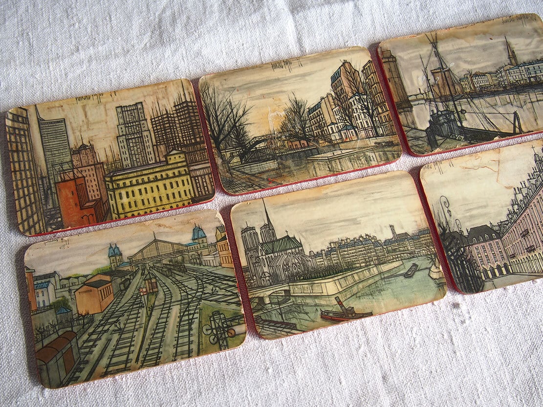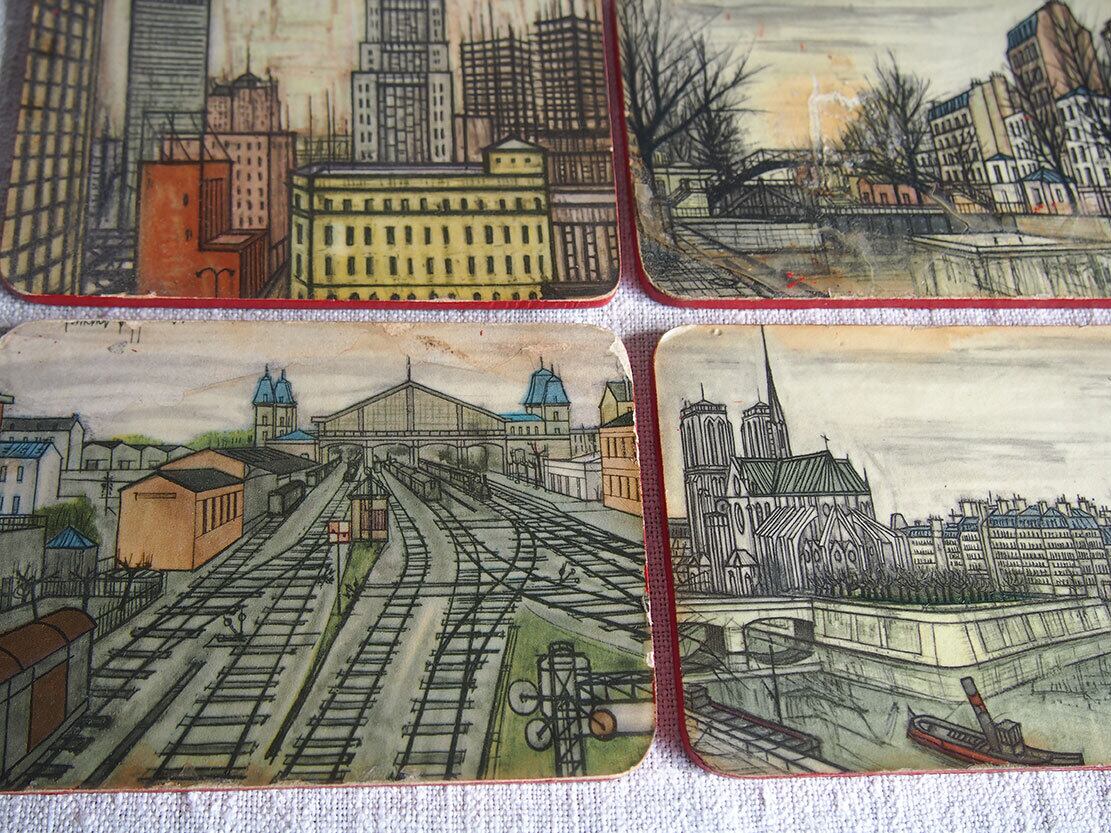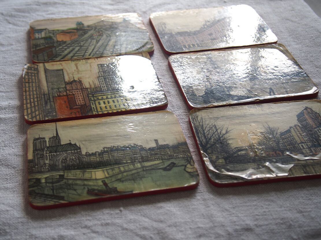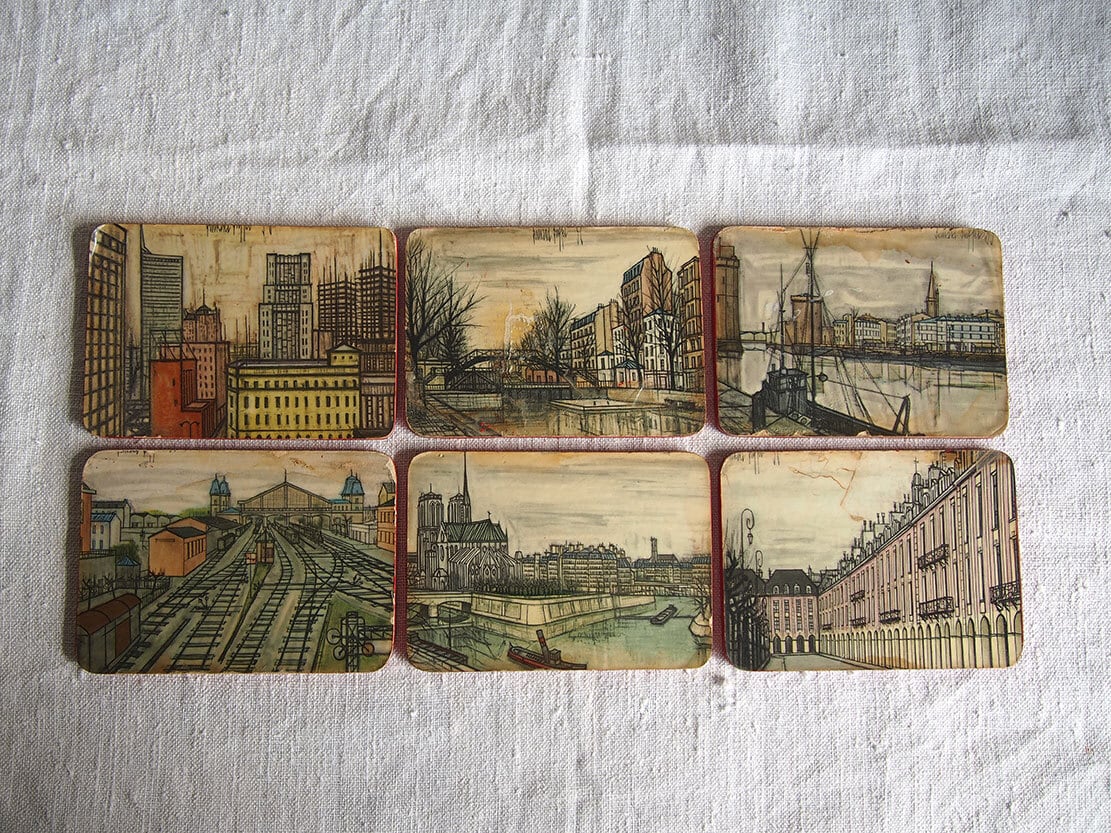 パリの画家ベルナール・ビュッフェのコースター6枚 ミッドセンチュリー 1950年 フランス スーべニール ビストロ ヴィンテージ アンティーク/K319