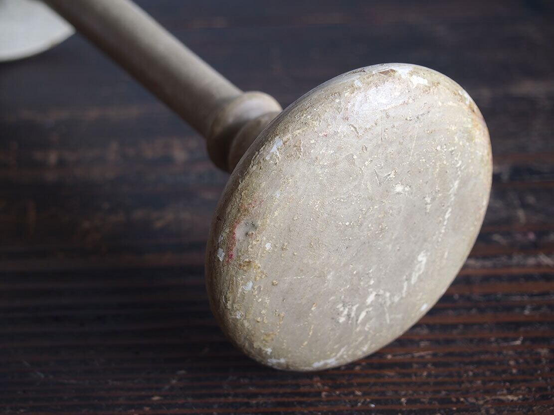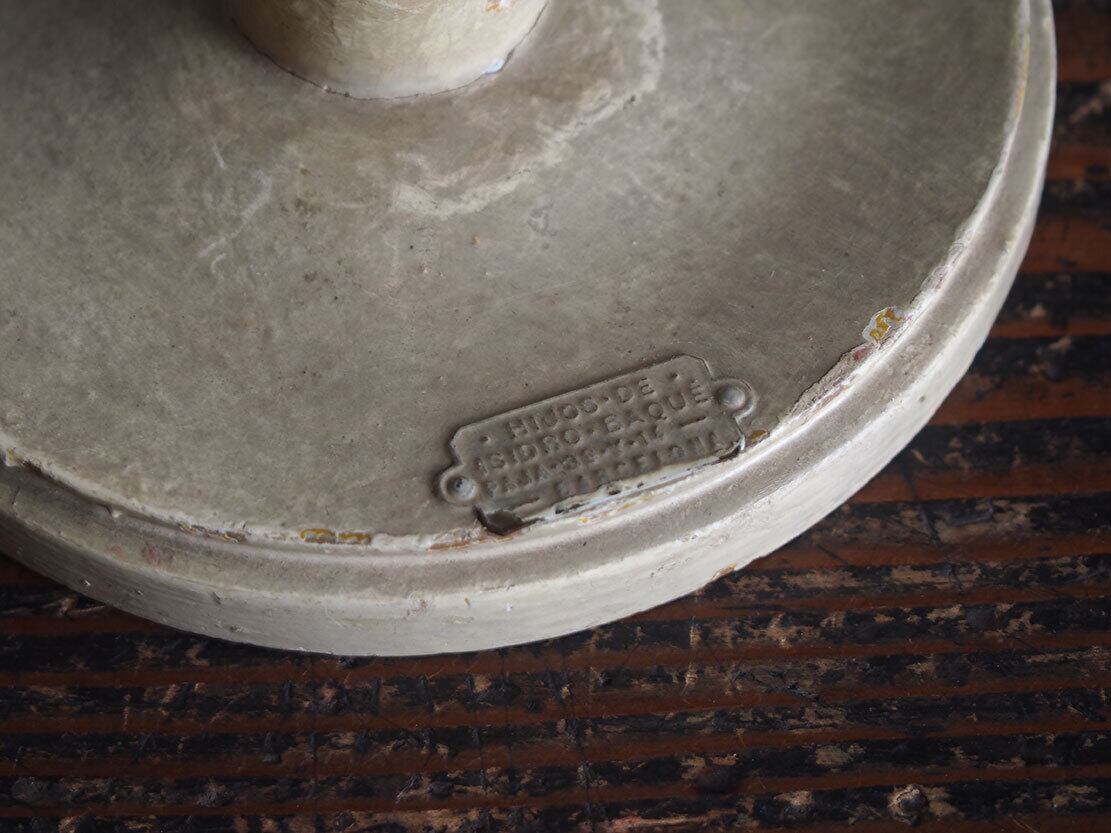 ヨーロッパのアンティーク市にて入手。1930年ぐらい?。木製のハットスタンドです。昔の洋装店で使われたものでしょう。台座にお店の金属プレートがあります。このお店はもうこの住所には存在しません。以前の持ち主がリペイントしたようです。ご覧のように汚れ、ペイントのハゲなどあります。参考資料、リメイクなどにどうぞ。