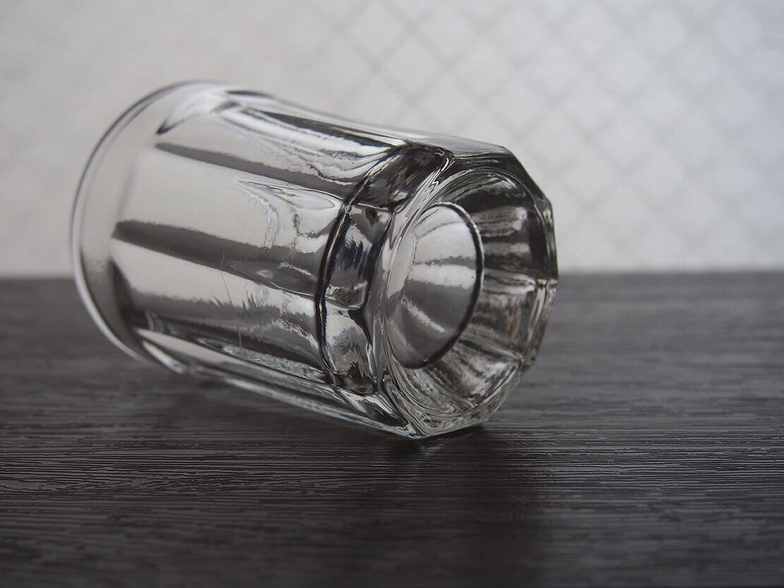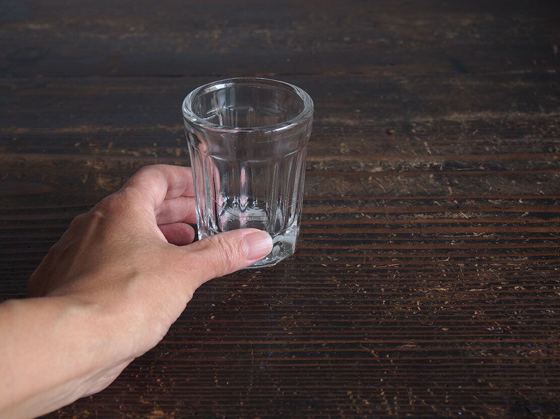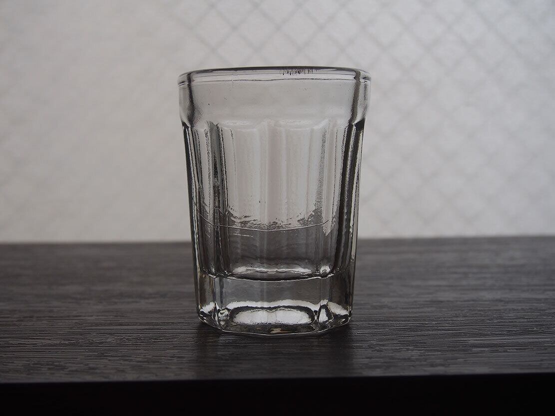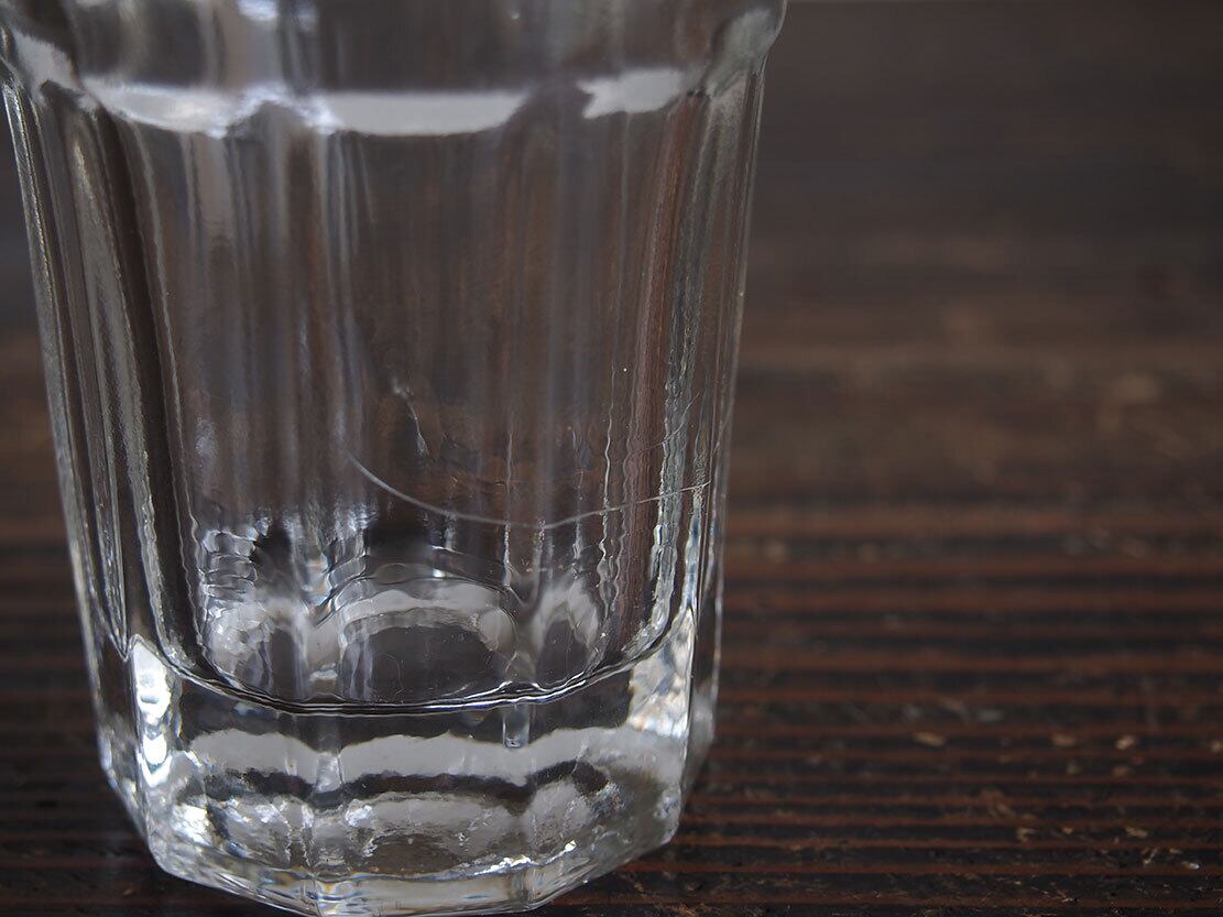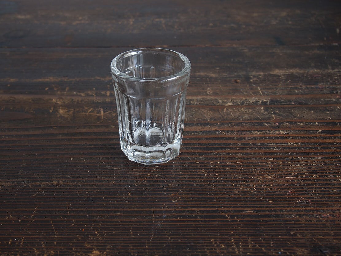 南欧のアンティーク市にて入手。昔のビストロで使われた厚手のグラス。1900年代前半。製造時にできたガラスの練りムラがあります、ヒビではありません。特に目立つダメージはありません。参考資料、リメイクなどにもどうぞ。