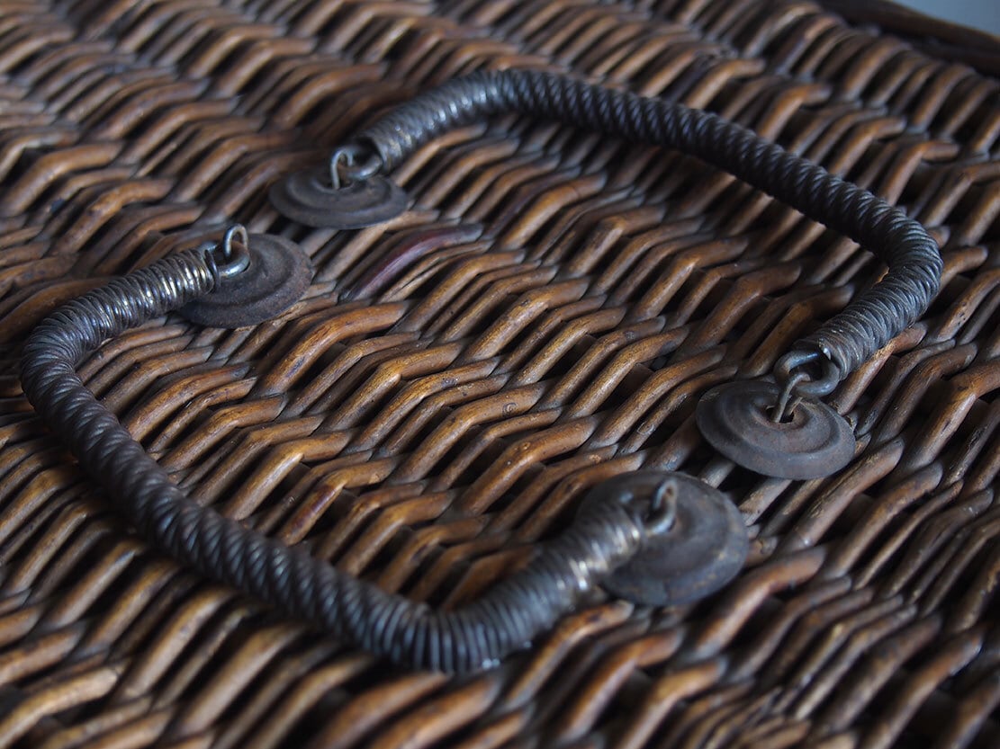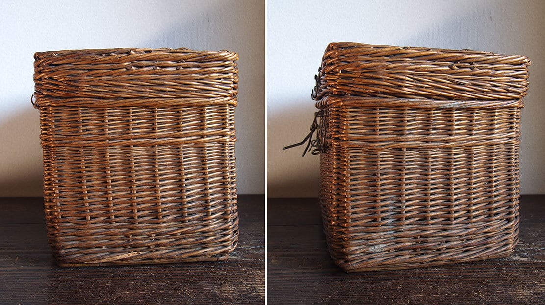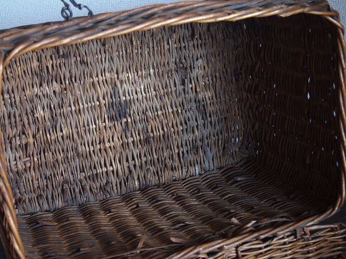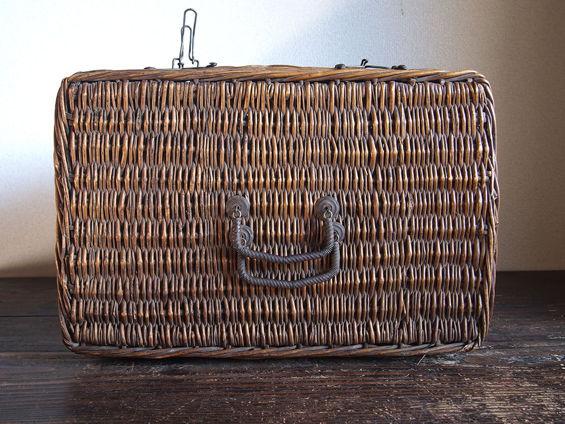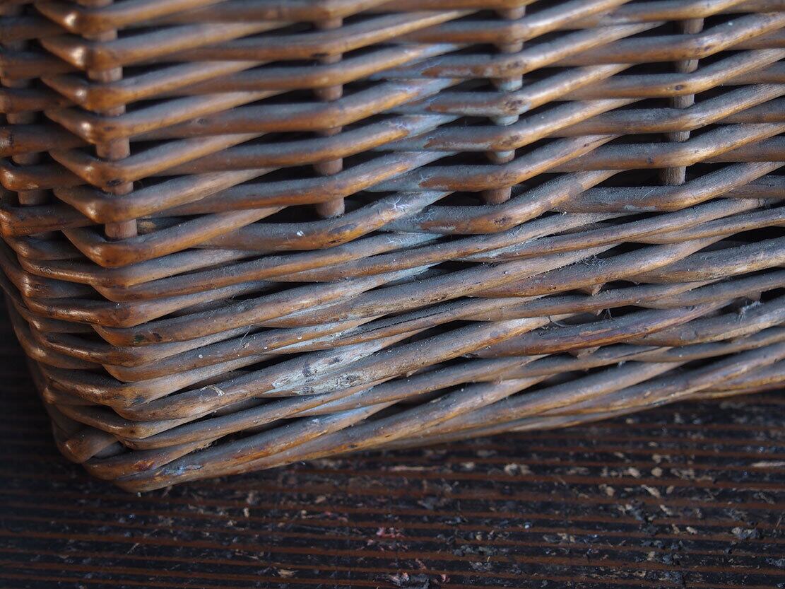 ヨーロッパのアンティーク市で入手したとても古いバスケット、1900年初頭ぐらい。ハンドルと留め金具の作りがとても珍しく、このタイプのものは初めての取り扱いです。編み目の切れ、蓋の多少の開けにくさなどあります。外部、内部共に水洗い後、乾燥させてあります。写真参照。収納やディスプレイにどうぞ。詳細は写真ご参照ください。*中に物を入れる事ができるので、他の商品との同梱包が可能です、ご希望のお客様は必ず事前にお問い合わせください。