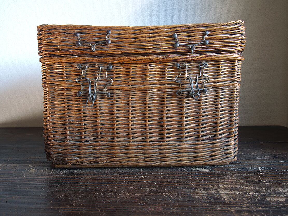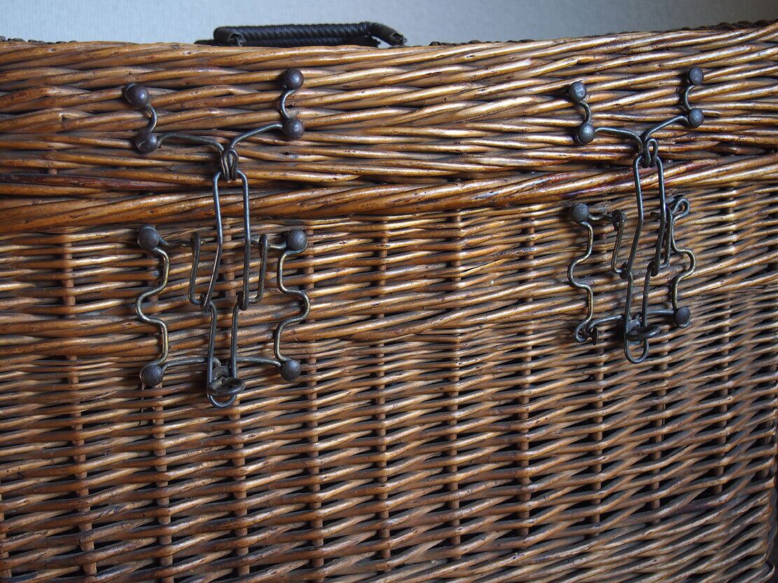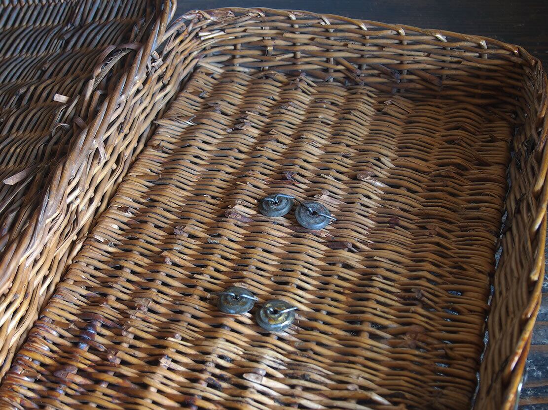 古いバスケット ラタンウィッカー パニエ トランク ピクニック 旅行鞄 1900年代 収納 ディスプレイにも ヨーロッパ 欧州 アンティーク フランス/K366