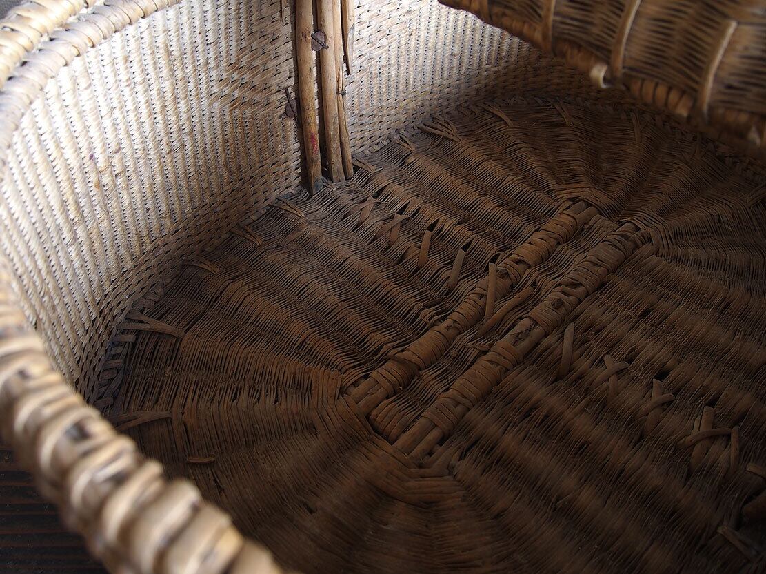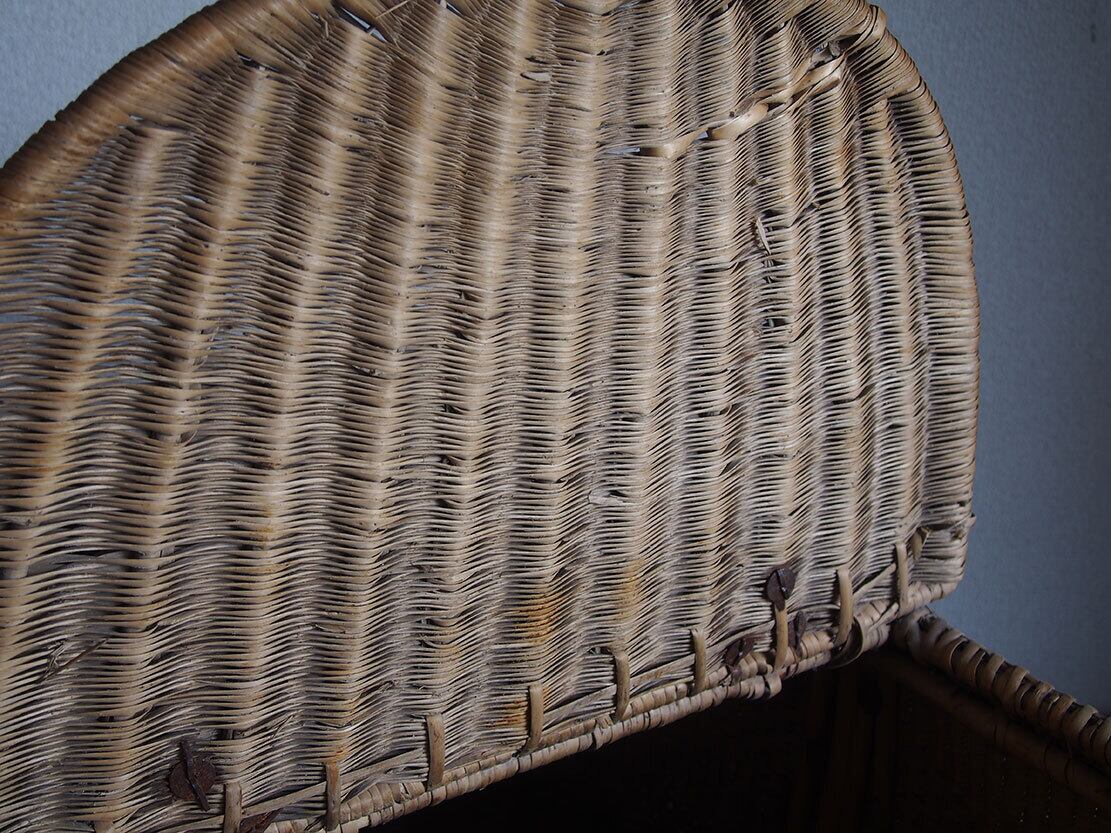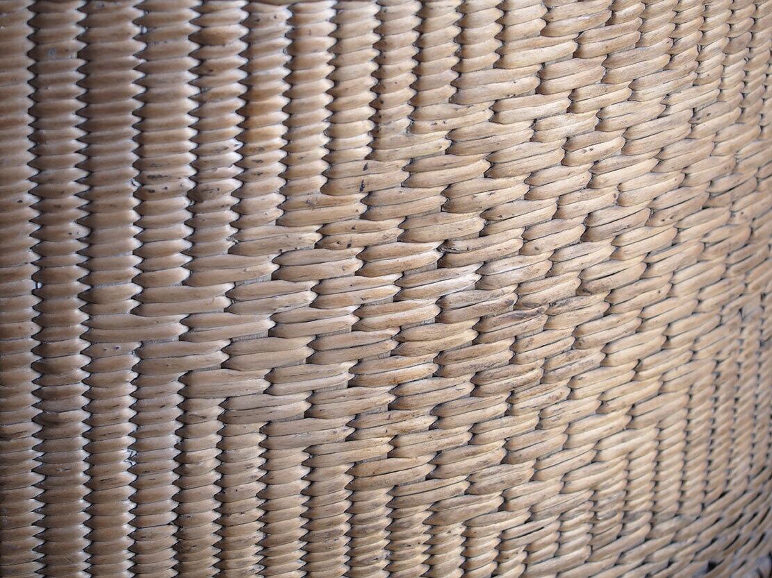 欧州のアンティーク市にて入手。枝編みパニエ、バスケット、1900年前後ぐらい。アシや柳等の数種類の素材が使われているようです。このサイズ感と作りのものは、滅多に手に入るものではないと思います。多少の編み目の切れや汚れなどがあります。収納のほか、ディスプレイ等にも。中に物を入れる事ができるので、他の商品との同梱包が可能です、ご希望のお客様は必ず事前にお問い合わせください。