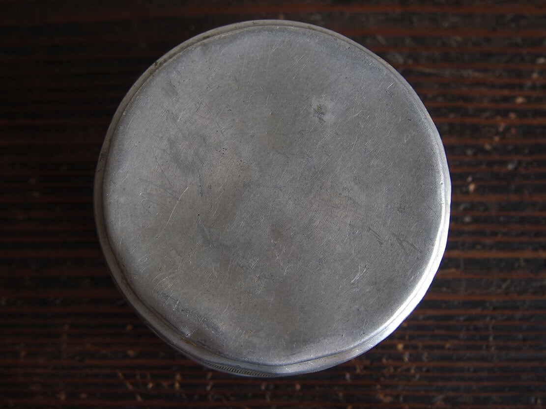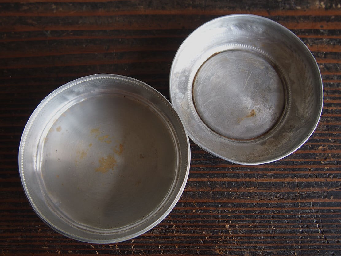 ●サイズ: 直径8.5cm×高4cm 約40g ●材質:アルミ、紙、ガラス板?