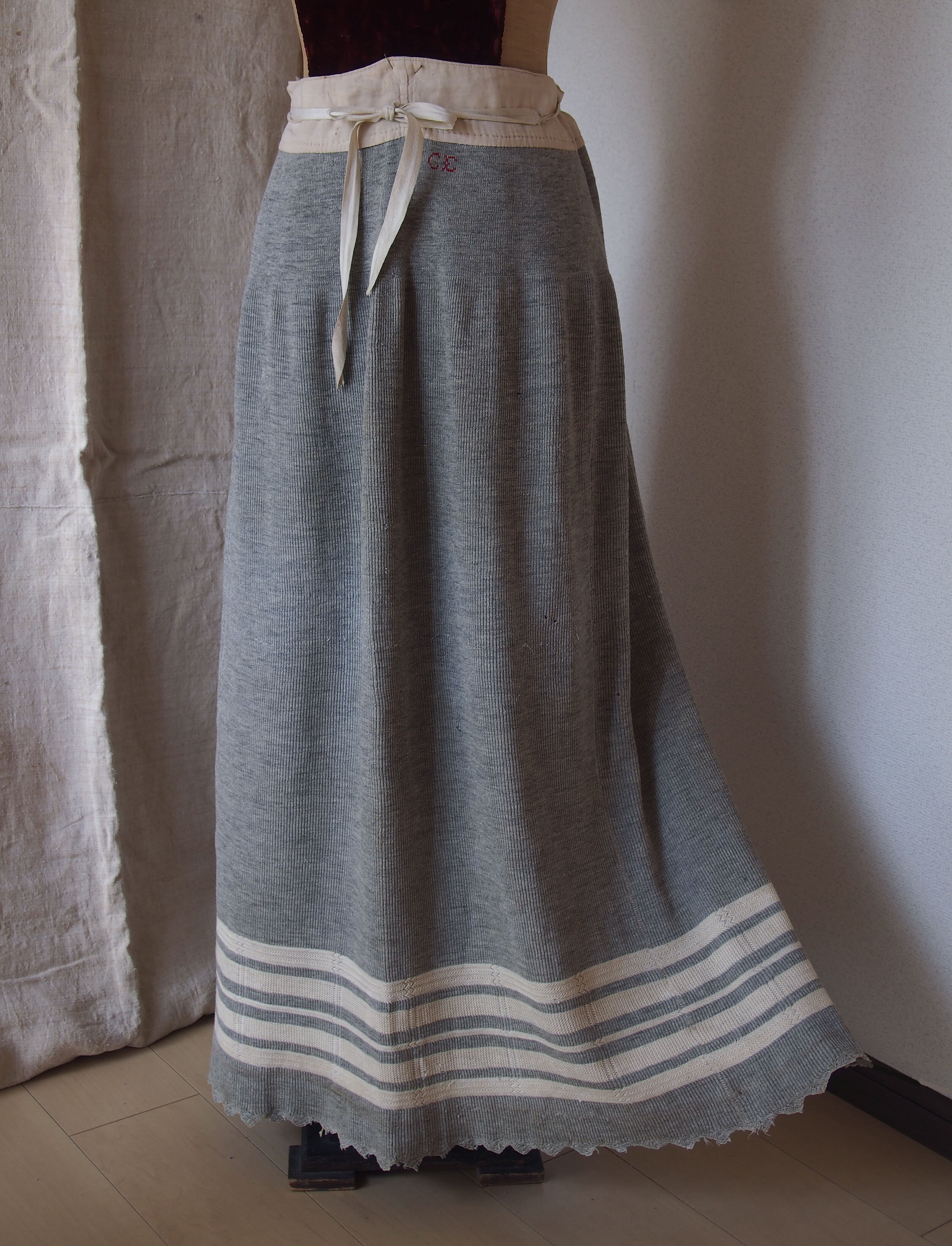 コットン ニット アンダースカート グレー 丈97cm ペチコート 1930年 時代衣装 アンティーク ヨーロッパ /K415