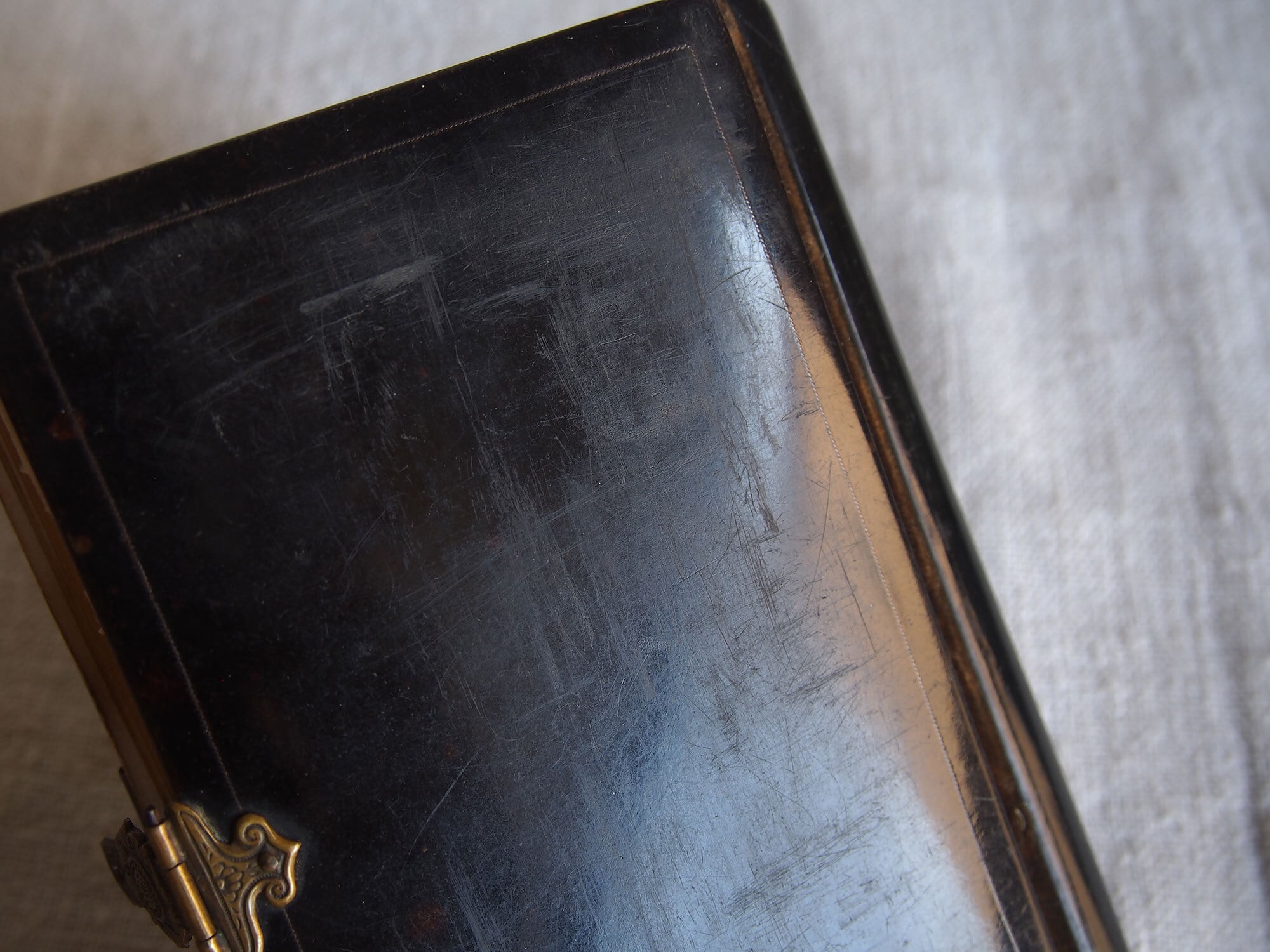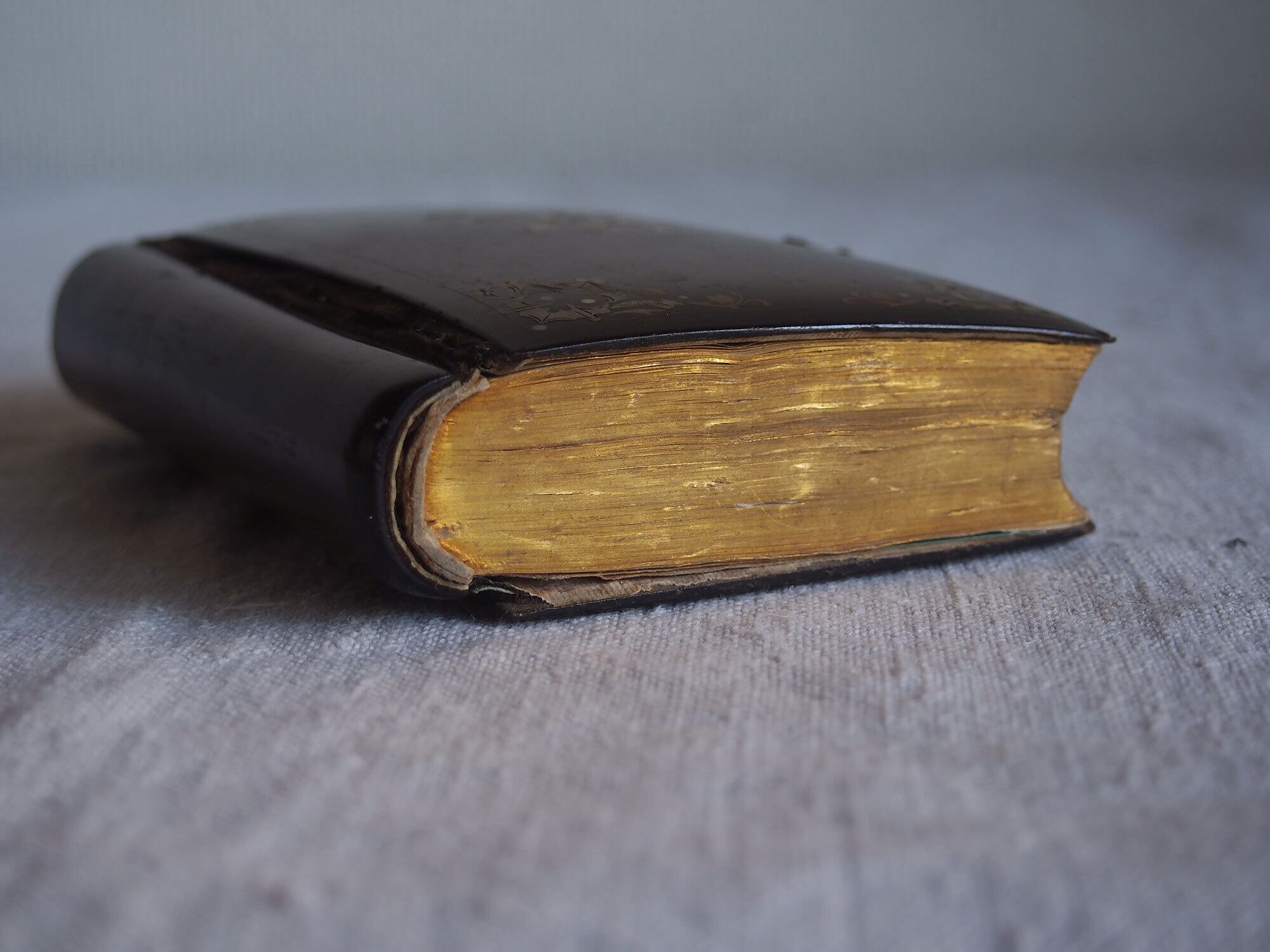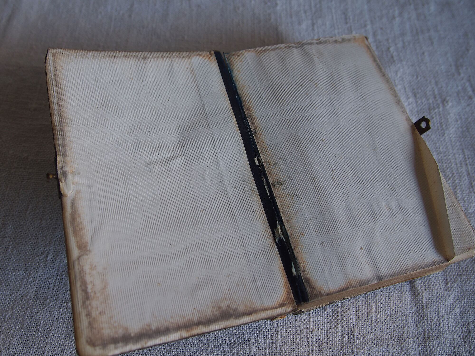 ミサ典礼書 白蝶貝象嵌と金彩装飾の古い本 留め金付きのカトリック祈祷書 キリスト ヨーロッパ アンティーク/K370