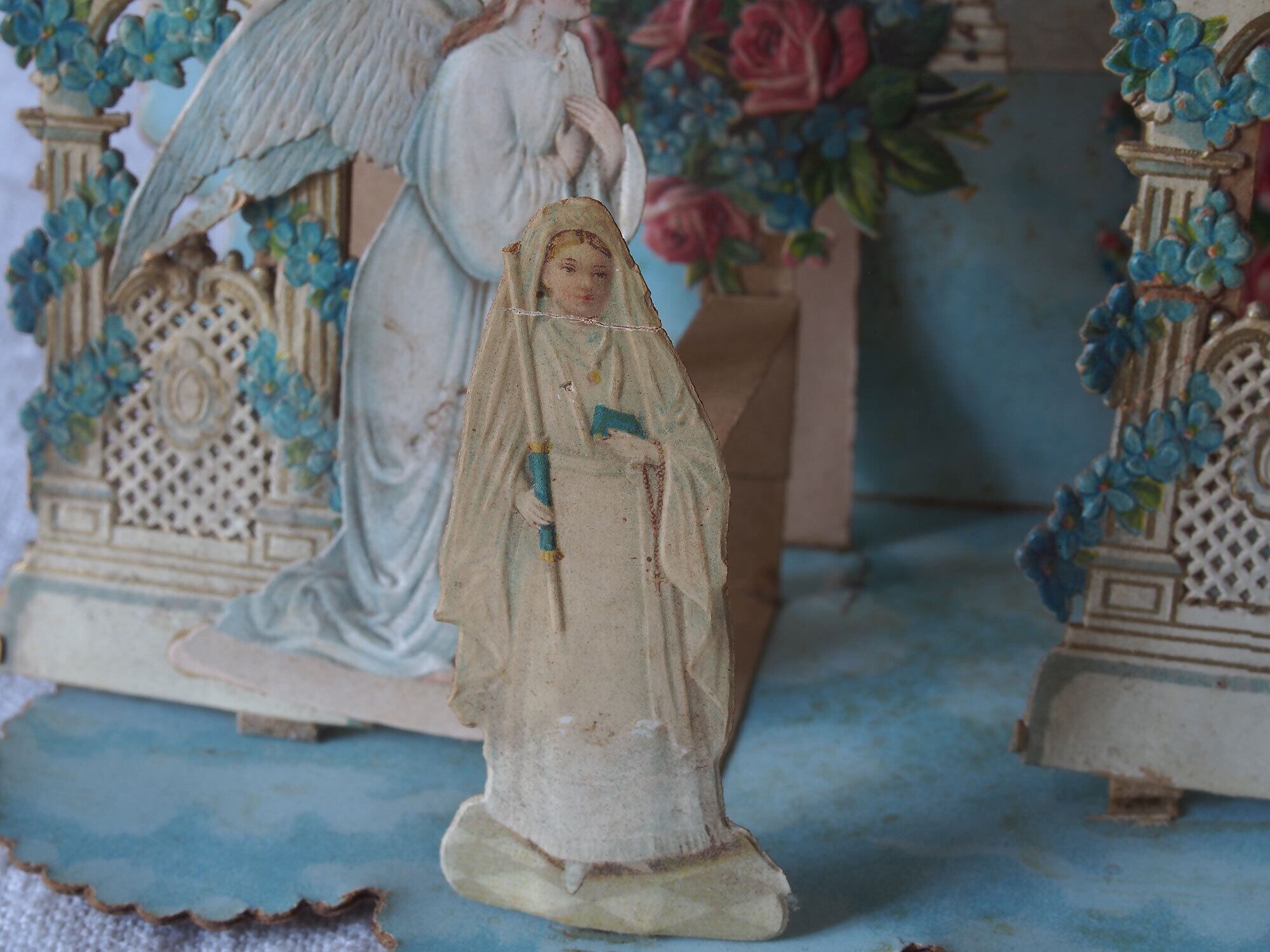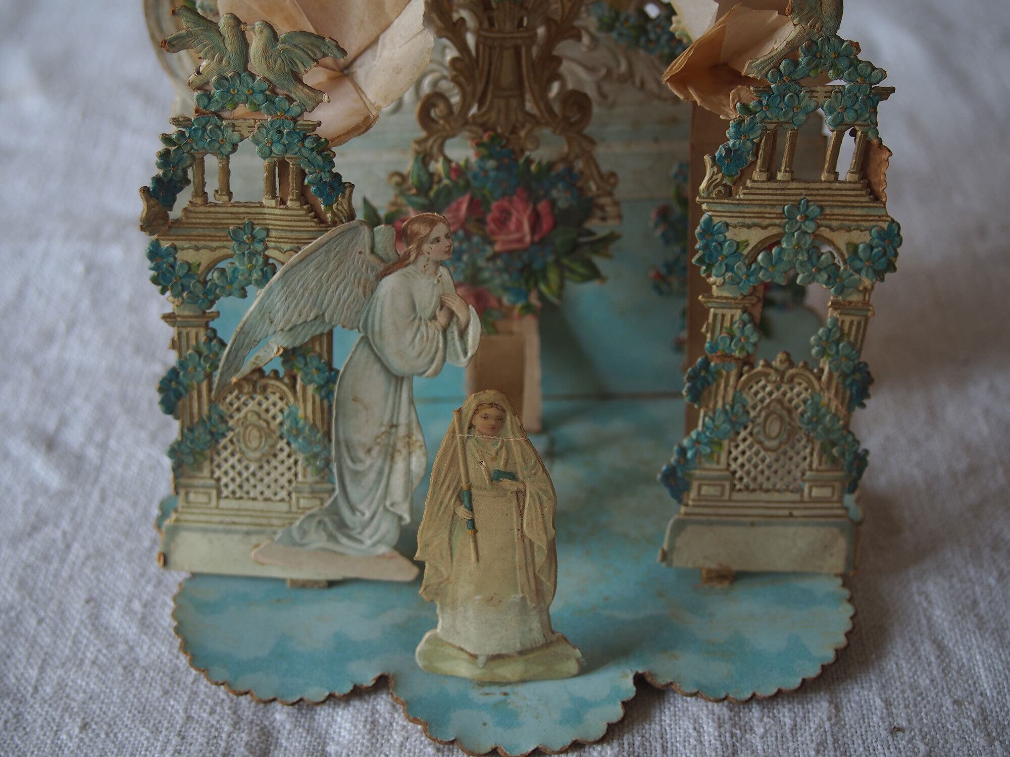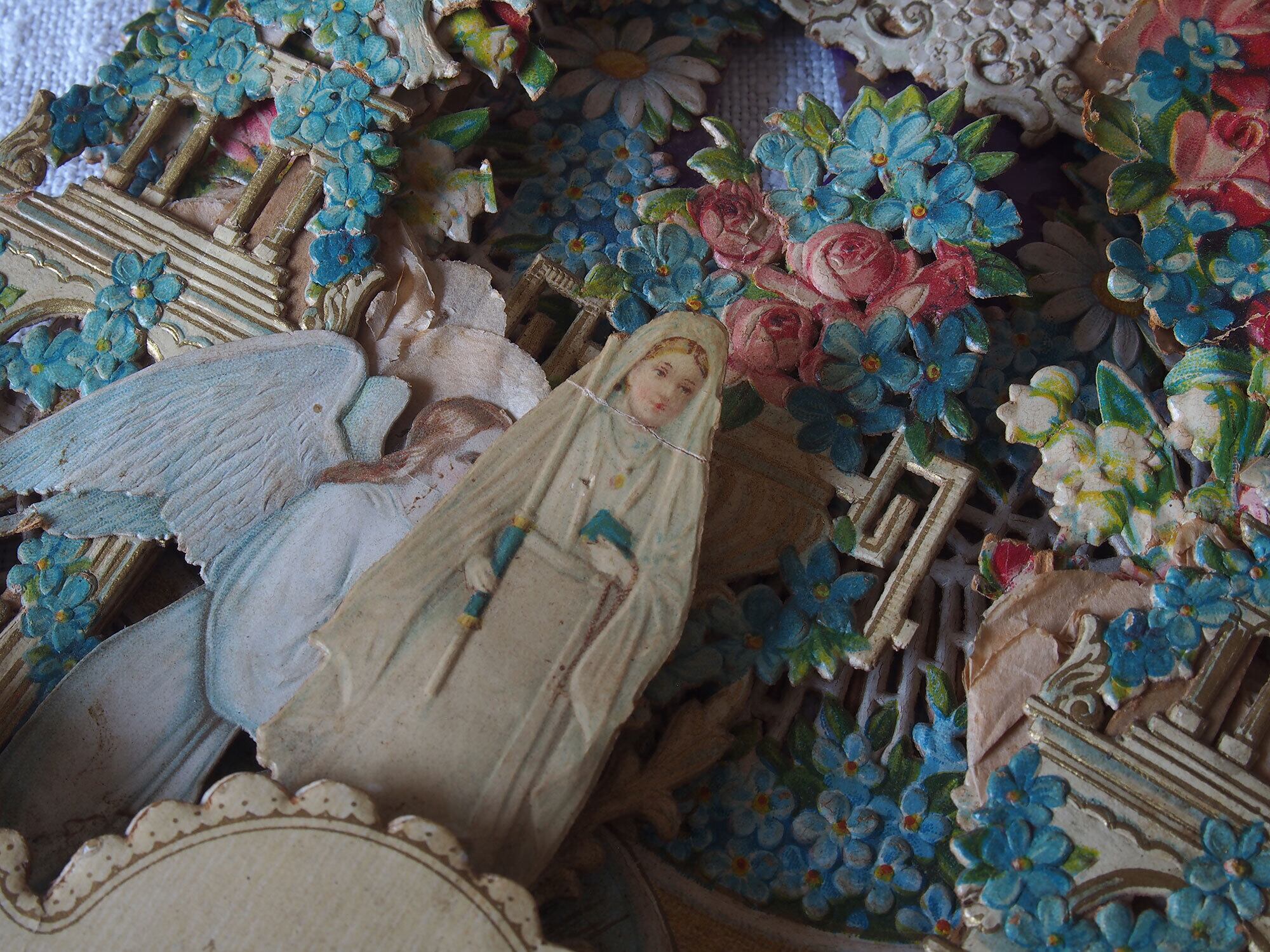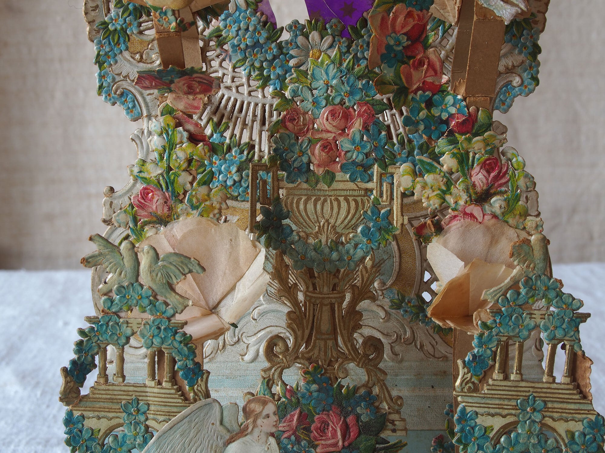 天使と花の装飾のペーパーデコレーション 紙製 オブジェ ヴィクトリアン期ペーパークラフト クロモリトグラフ 宗教芸術 アンティーク/K400