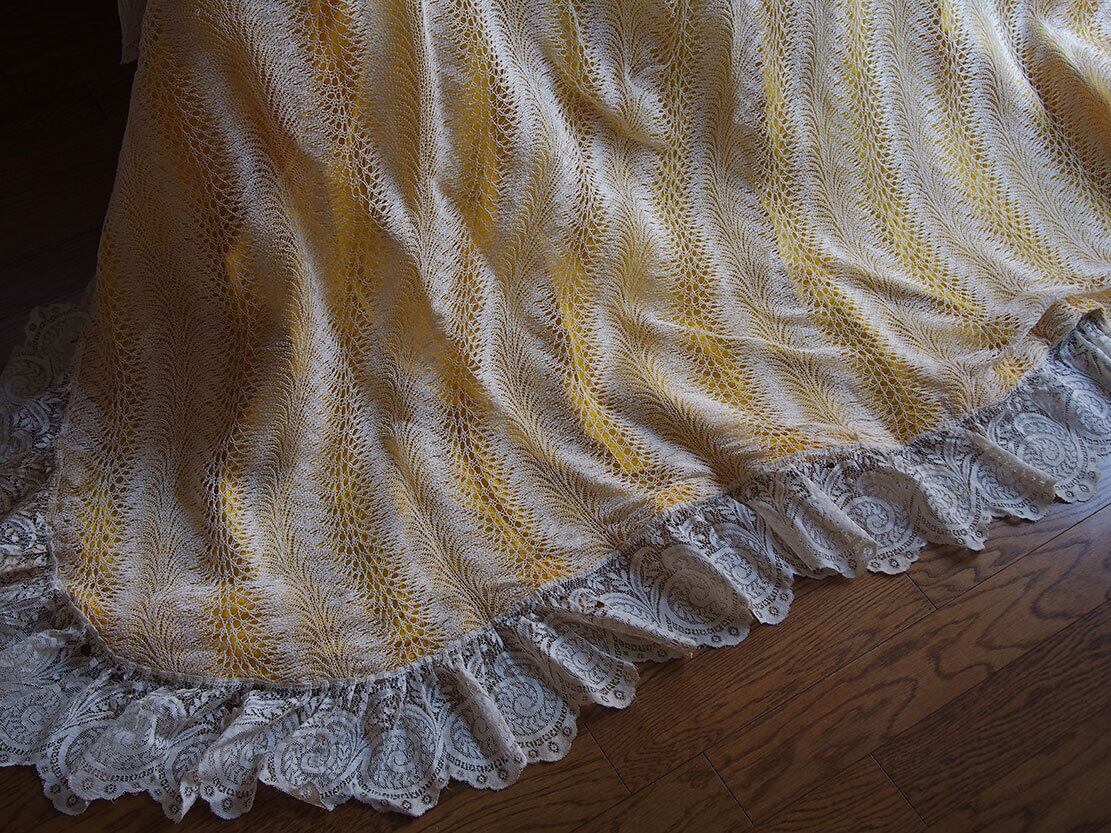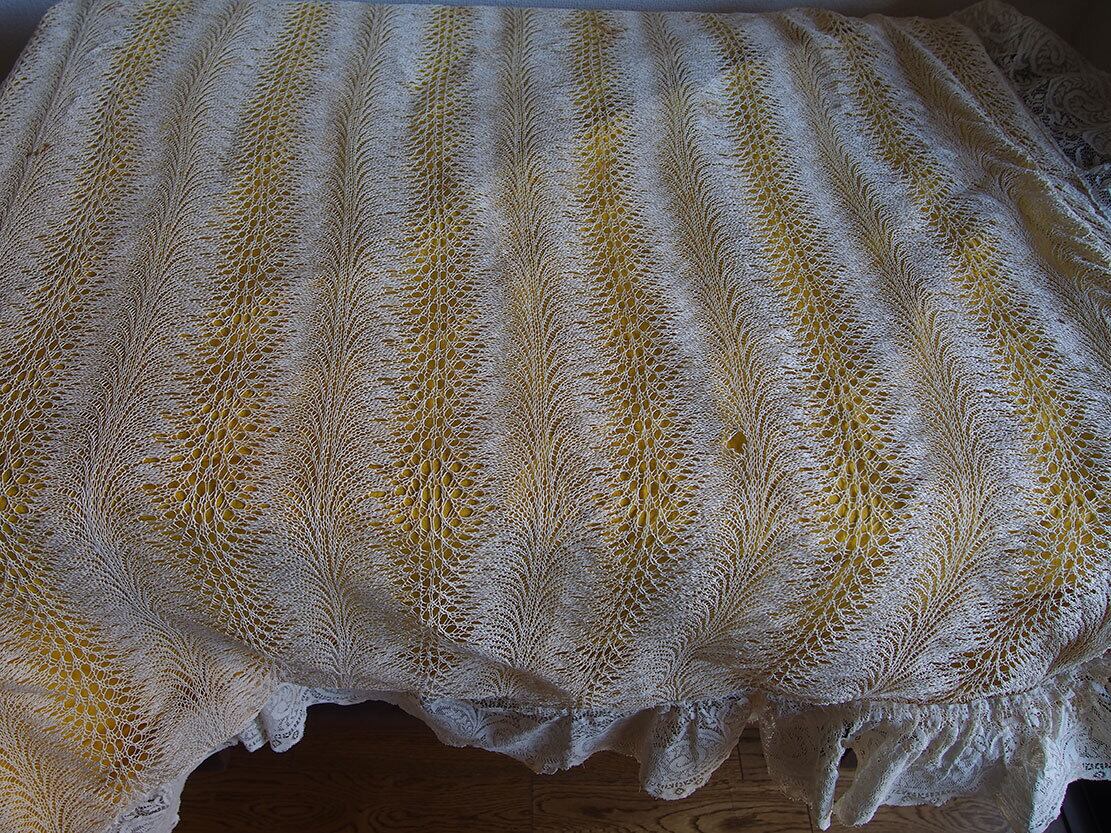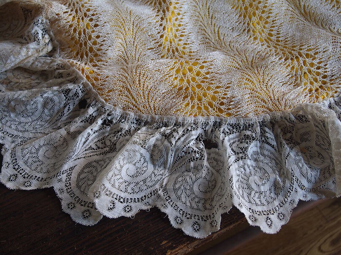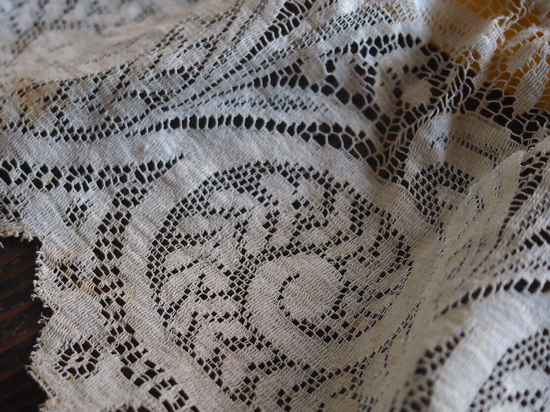 ニッティングレース ベッドカバー 幅209cm×長185cm+縁飾り13cm 間仕切りにもヴィンテージ アンティーク/K368