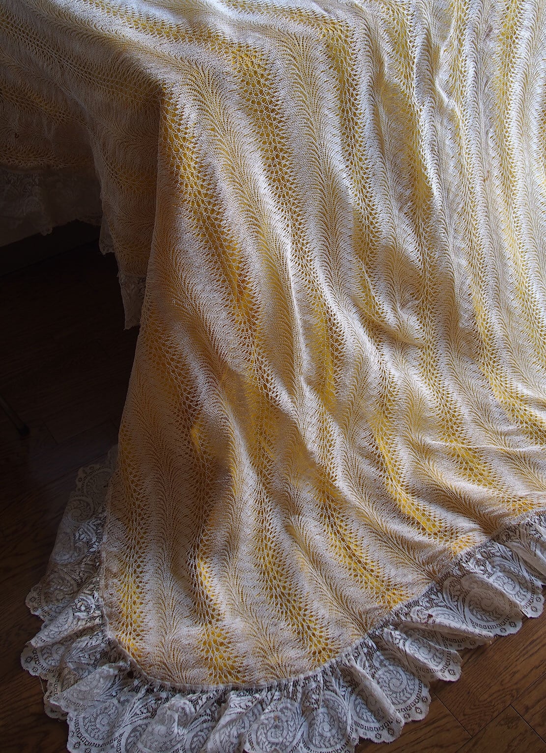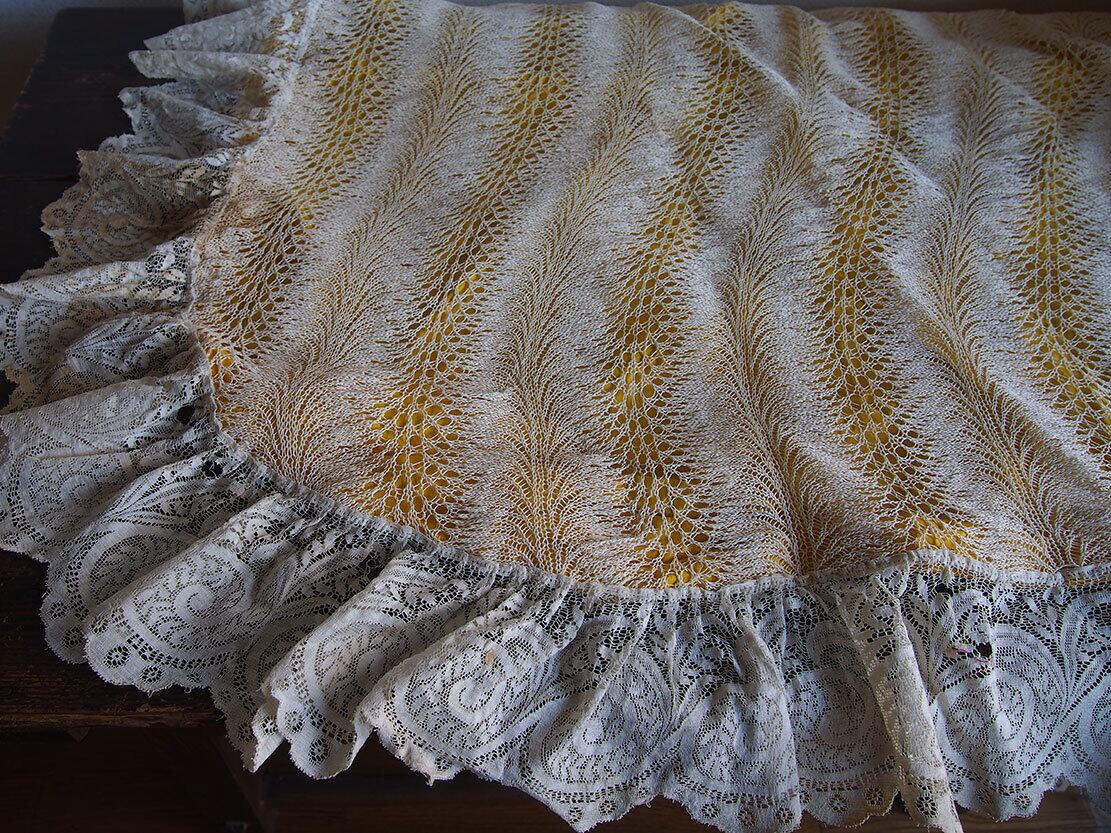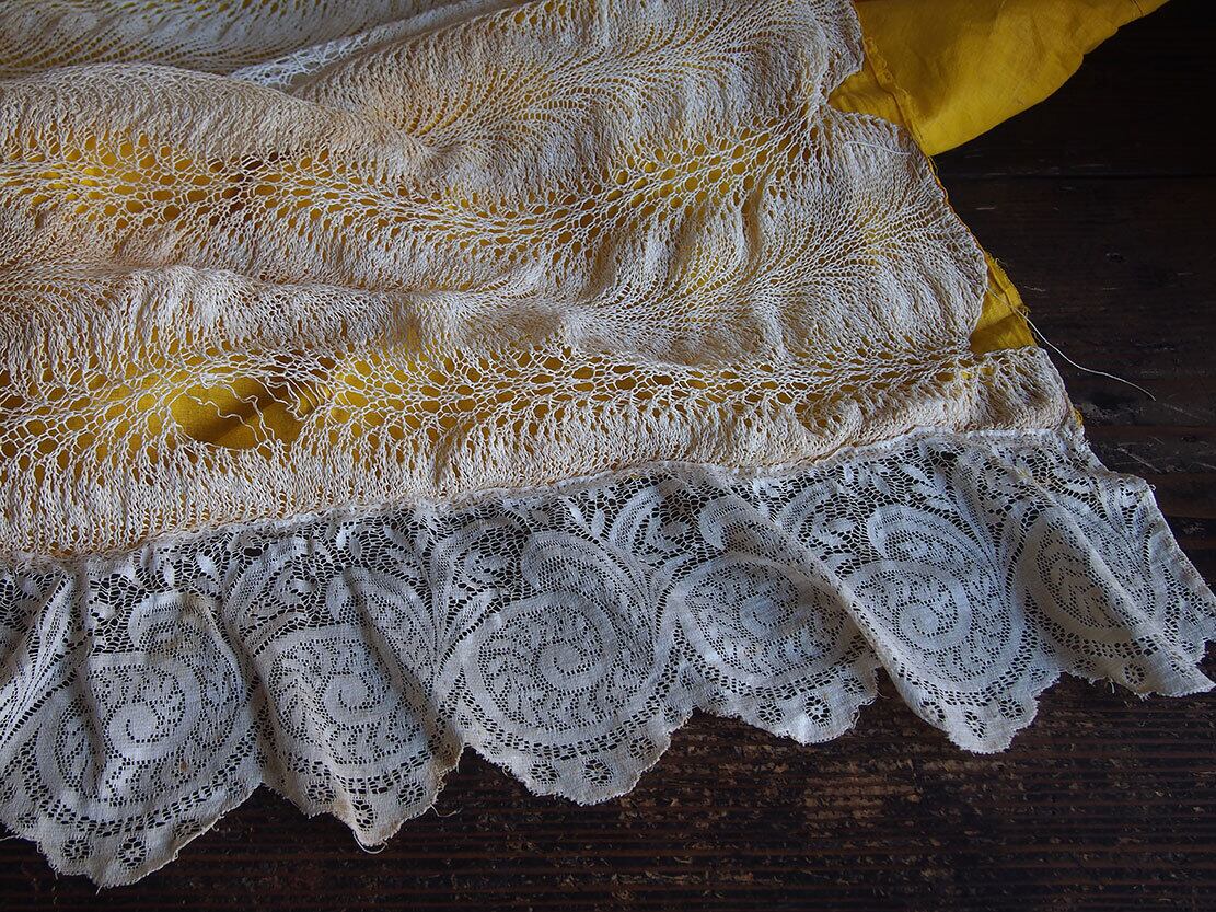 ニッティングレース ベッドカバー 幅209cm×長185cm+縁飾り13cm 間仕切りにもヴィンテージ アンティーク/K368