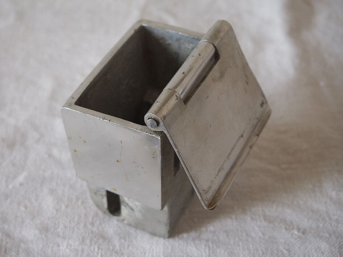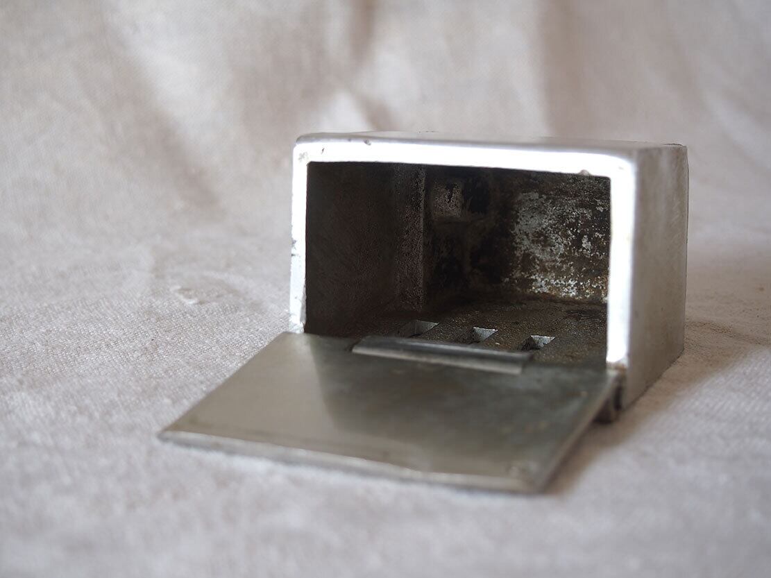 ●サイズ: 高8.5cm×幅7.1cm×奥5.5cm 約226g ●材質:アルミニウムヨーロッパのアンティーク市にて入手。スペインの国営鉄道、RENFEのアルミ製灰皿。1940年代から1960年代のものだと思われます。ご覧のように亀裂や細かな傷などございます。内部は水洗い後乾燥させてあります。参考資料、リメイクなどにどうぞ。