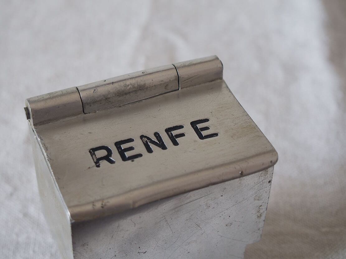 鉄道グッズ スペイン国営鉄道 RENFE 電車アルミ灰皿 鉄道部品 サルベージ オーナメント デコレーション アンティーク ヴィンテージ/K421