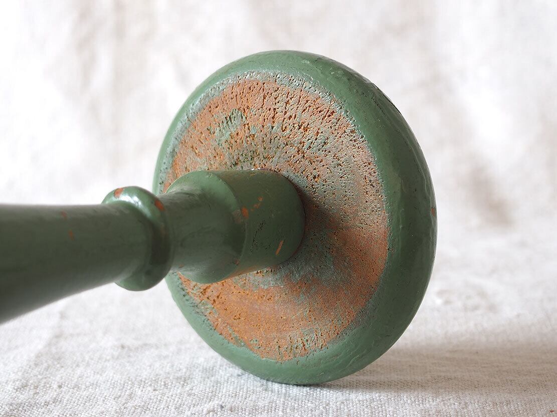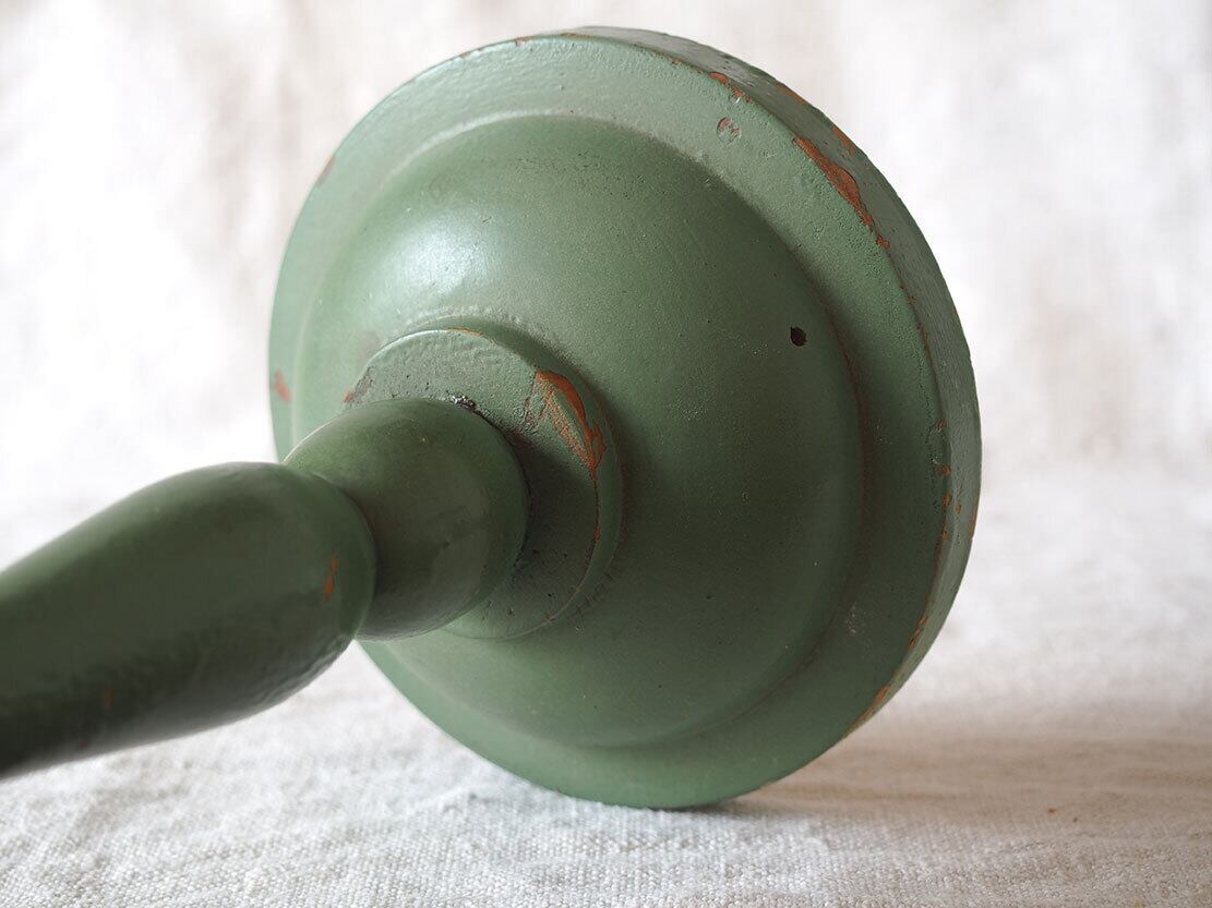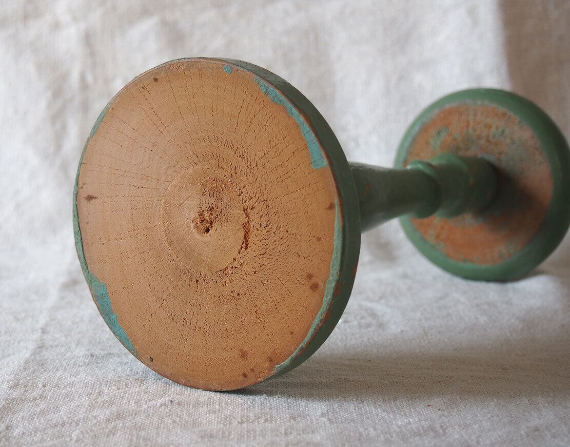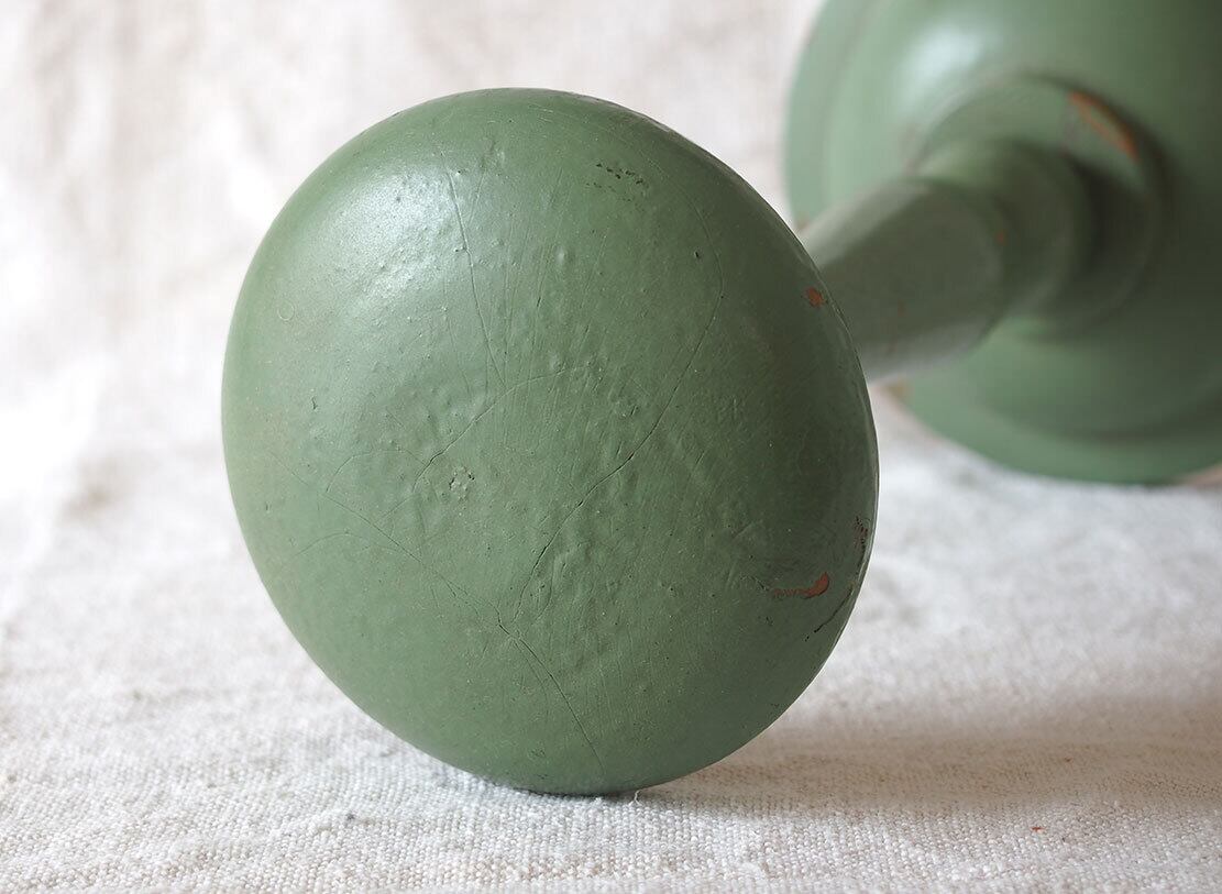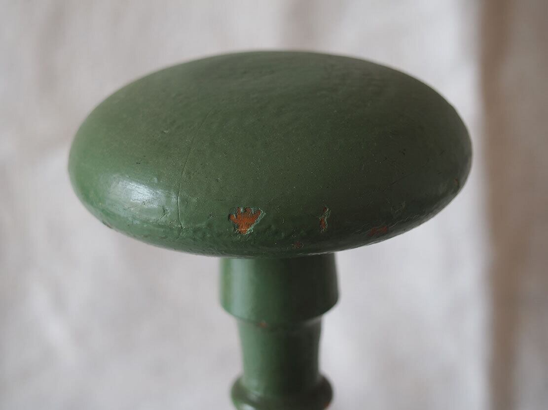 ヨーロッパのアンティーク市にて入手。1950年ぐらい?。木製のハットスタンドです。昔の洋装店で使われたものでしょう。上部の厚み2.5cm。ご覧のようにペイントのハゲなどあります。参考資料、リメイクなどにどうぞ。