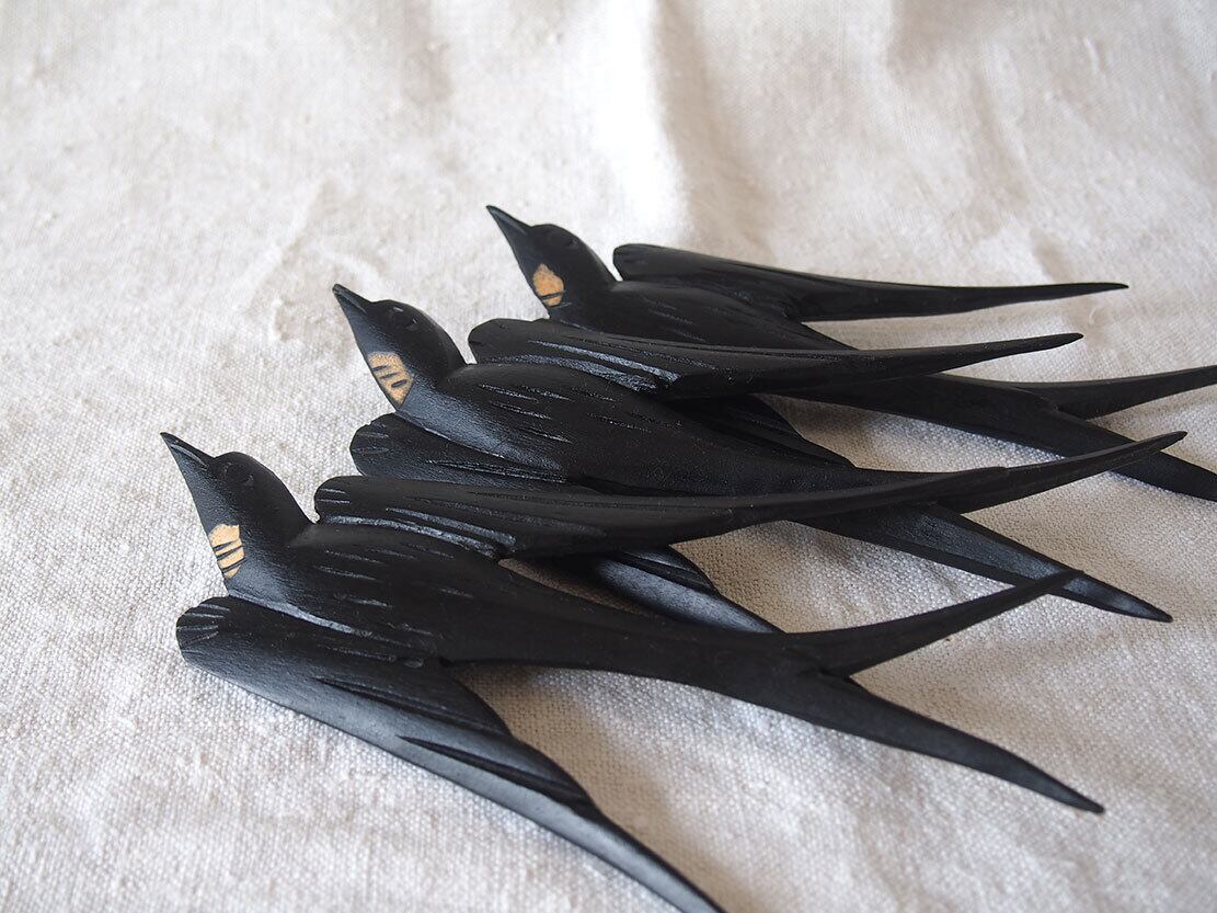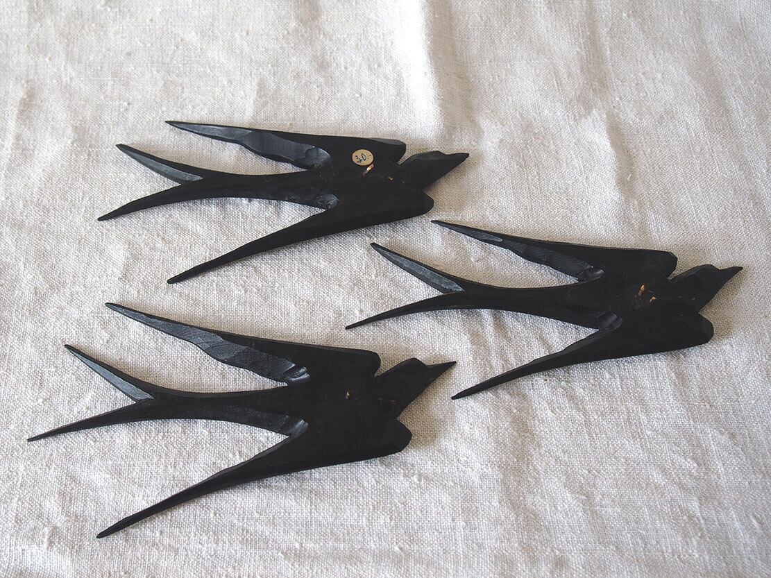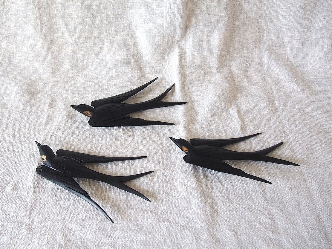木彫りのツバメ 壁飾り オーナメント3羽 燕 ヨーロッパ シャビーシック 渡り鳥 小鳥 欧州 蚤の市 ヴィンテージ/K418