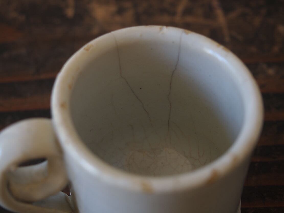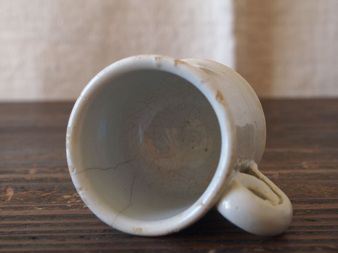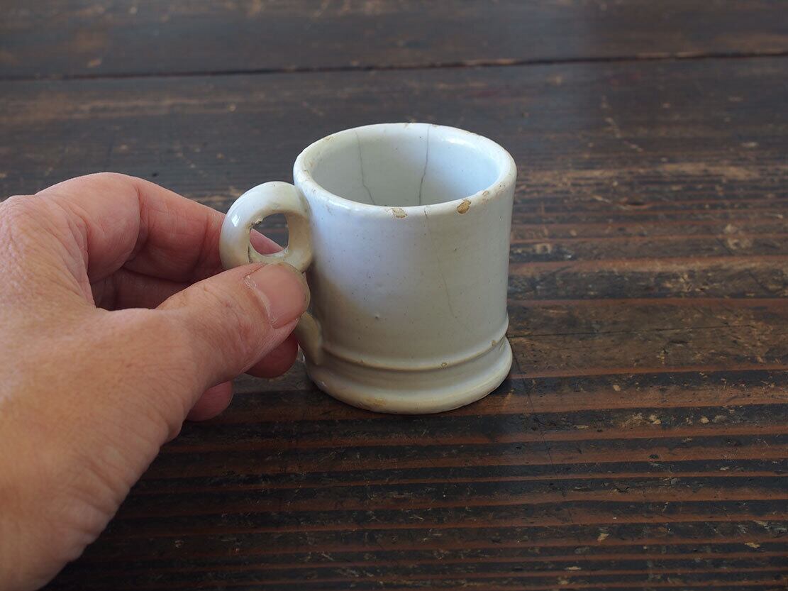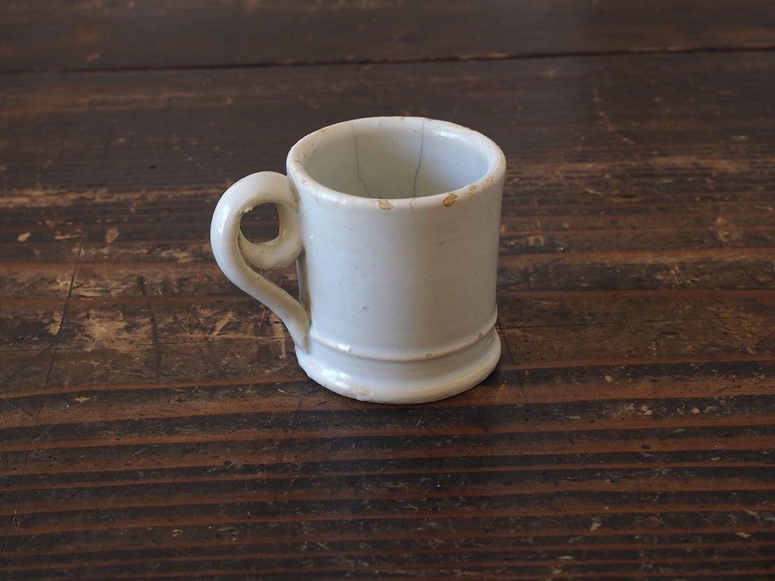白釉薬 小さなコーヒーカップ マニセスカップ 19世紀 スペイン古陶 ブリュロカップ ビストロ 古道具 工藝 エスプレッソ アンティーク/K411
