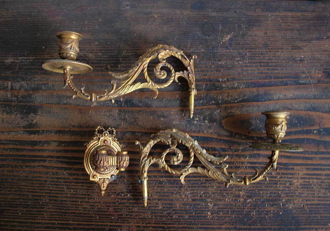 ピアノ用 キャンドルスタンド 2口 ピアノ燭台 ネオロココ 金属製 キャンドルホルダー 1900年 西洋 フランス アンティーク/J934