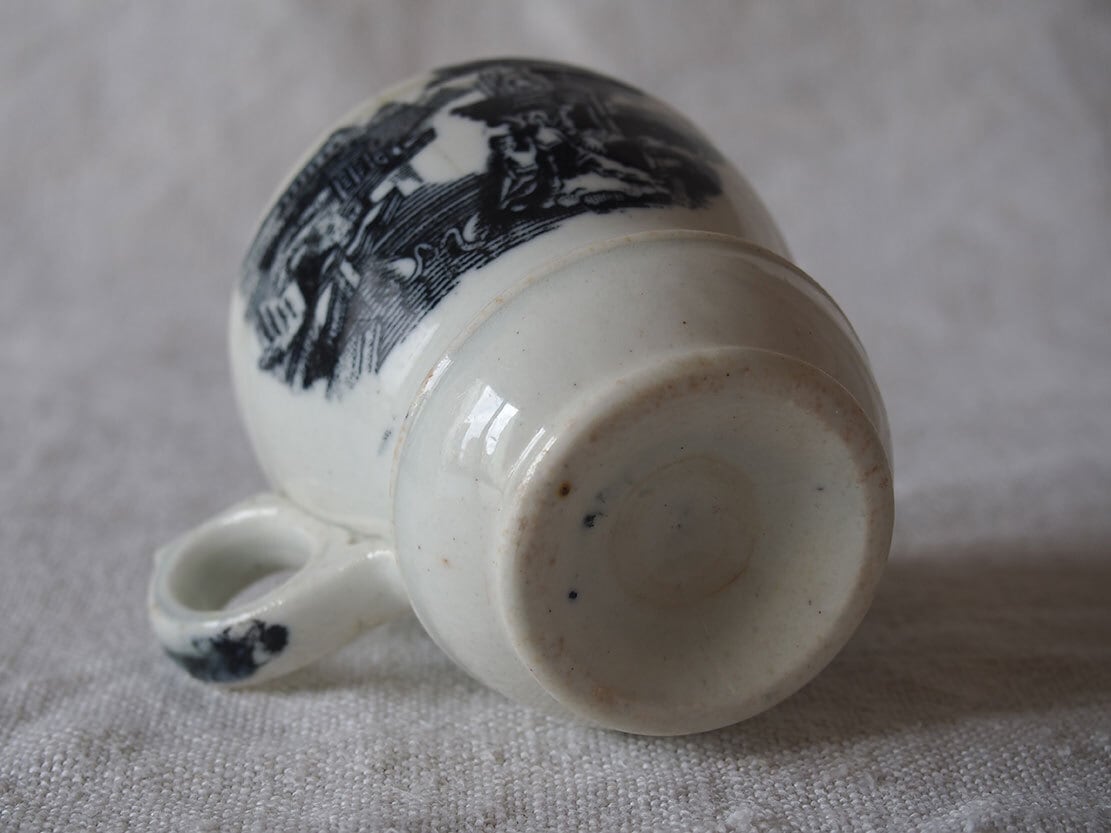 コーヒーカップ 19世紀 ヴィクトリアン様式 グリザイユ スペイン古陶 トランスファーウエア ブリュロカップ ビストロ ピックマン 工藝 アンティーク /K441