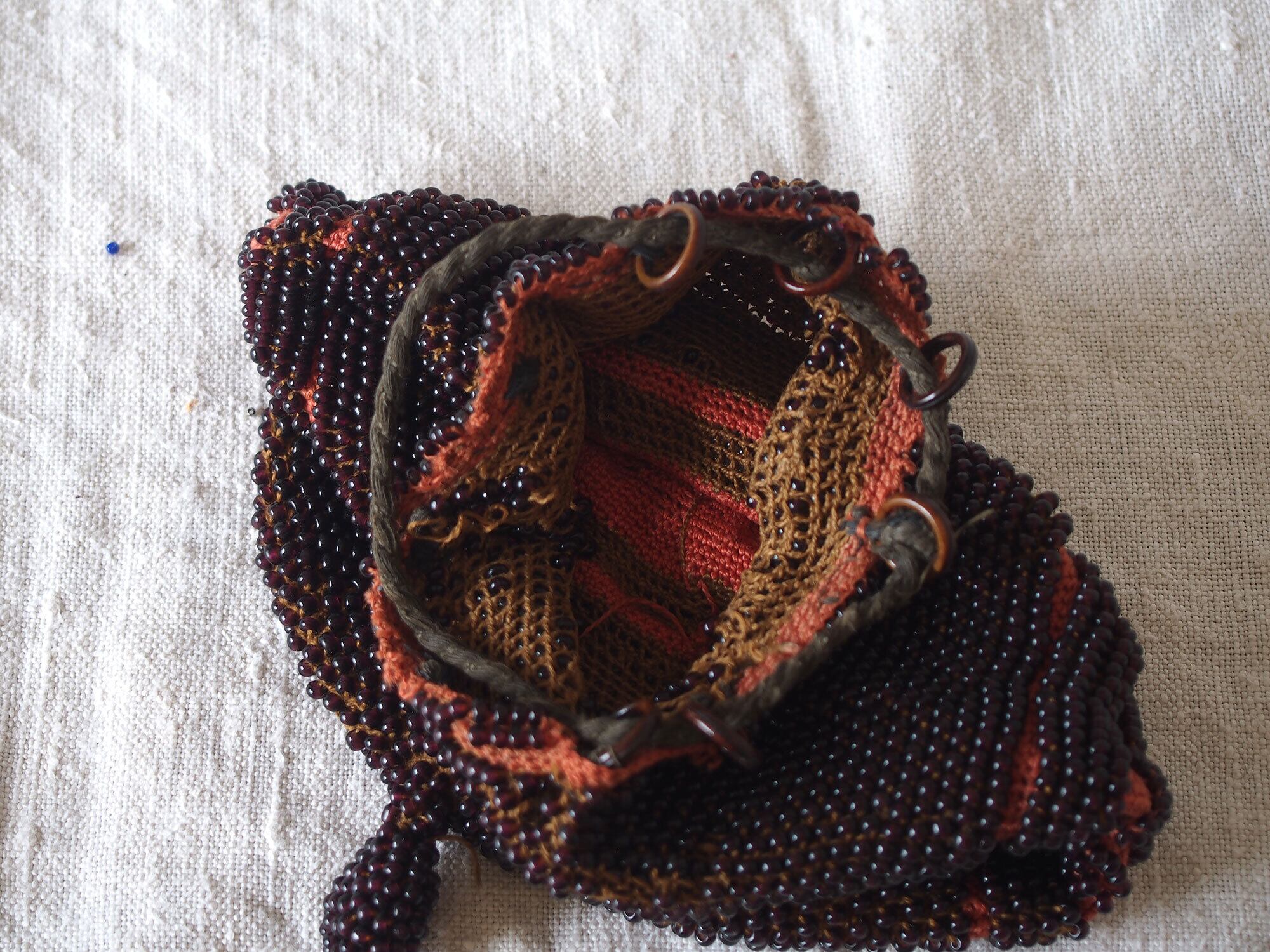 ガラスビーズ刺繍パース ドローストリング 小物入れ ヴィクトリアン 巾着バッグ アンティーク 時代衣装/ K392