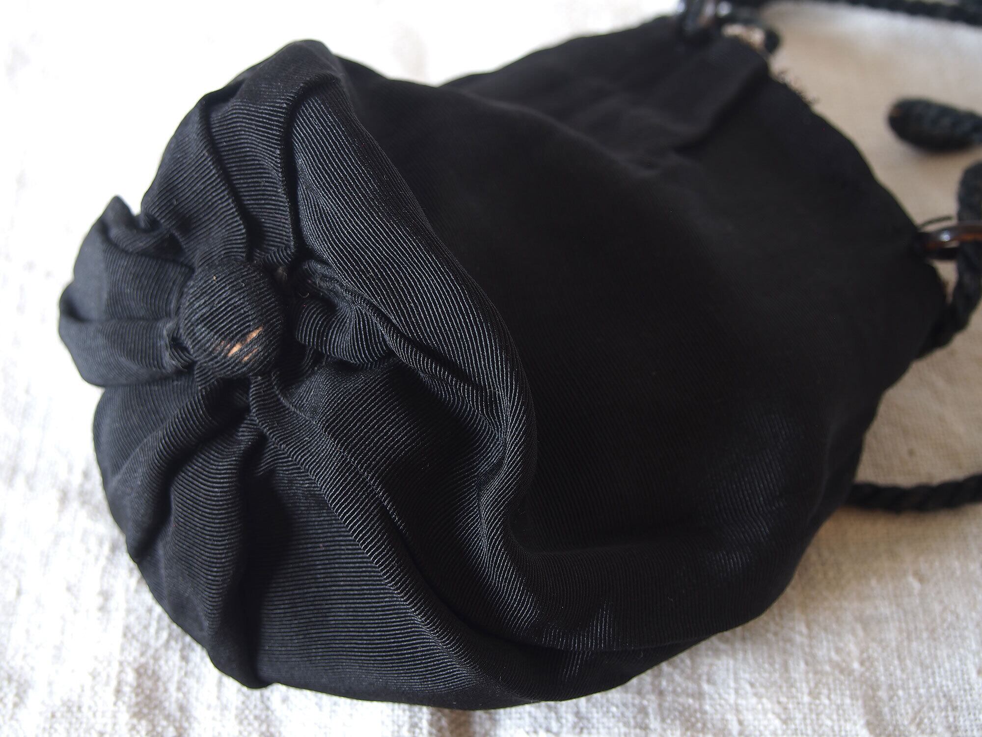 ●サイズ: 口幅15cm 長さ15.5m+底の丸い飾り2cm 169g ●材質:ガラスビーズ、絹、綿など欧州のアンティーク市で入手。美しいブルーのガラスビーズで全面に刺繍が施された、19世紀末〜20世紀初頭およそ1890〜1910年代のアンティーク・ビーズパースです。口は巾着(ドローストリング)仕様で、底部にはビーズ装飾のボール状チャームが付いています。 裏地はモアレタフタ。口の部分と袋の底に近い部分にダメージあります。ドールのバッグやデザインなどの参考資料、部品取りにもいかがでしょう。写真を多数用意し、状態をきちんと確認できるように努めていますので、ノークレーム・ノーリターンでおねがいします。詳細は写真でご確認いただけます。古い物だと言う事をご理解の上のご入札をお願い致します。材質及び年代の判定は困難な場合があります、差異についてはあらかじめご了承下さい。アンティークドールの小物などにも。