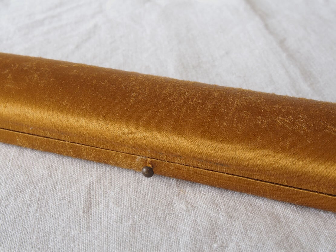 欧州のアンティーク市で入手したヴィンテージ 時計のケース。 蓋の内側にはスイスの時計メーカー「Favre-Leuba(ファーブル・ルーバ)」のプリント。この会社は 1737年創業の非常に古いスイス時計ブランドで、世界でも2番目に古い時計ブランドと言われています。細長いのでドレスウォッチ用の長箱だと思われます。1930年〜1950年ぐらい。多少の布の傷などあります、写真でご確認ください。ドールのアクセサリーケースなどにいかがでしょう?