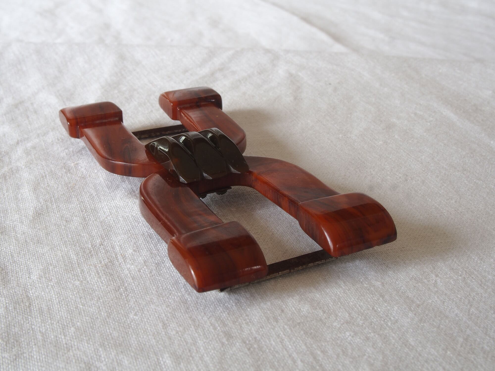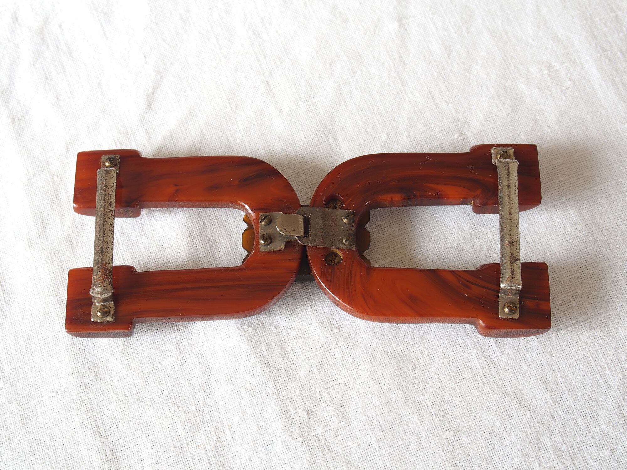 マーブル模様 ベークライト ヴィンテージ バックル アールデコ期 コスチュームジュエリー 時代衣装 ヨーロッパ /K483