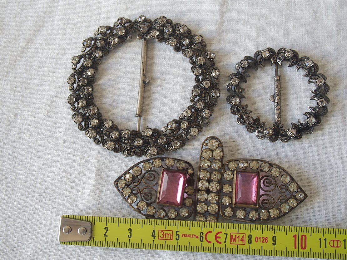 アンティーク 金属バックル 3個 難あり ラインストーン アール・ヌーヴォー コスチュームジュエリー ヨーロッパ /K508