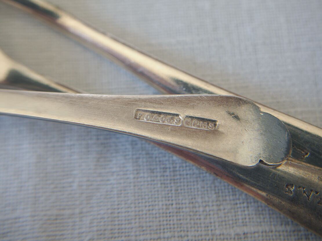 ヨーロッパのアンティーク市で入手。1920〜1940年代ぐらい。シルバープレートスプーンのバターナイフ3本セット。裏面にEPNS刻印=銀メッキの刻印あり。洗浄してあります、多少の傷やメッキのハゲ、歪みがあります。バラ売りはいたしません。*撮影の環境で少し黄味がかって見えますが、ごく普通のシルバーの色です。古い物なのでご覧のように傷などあります。