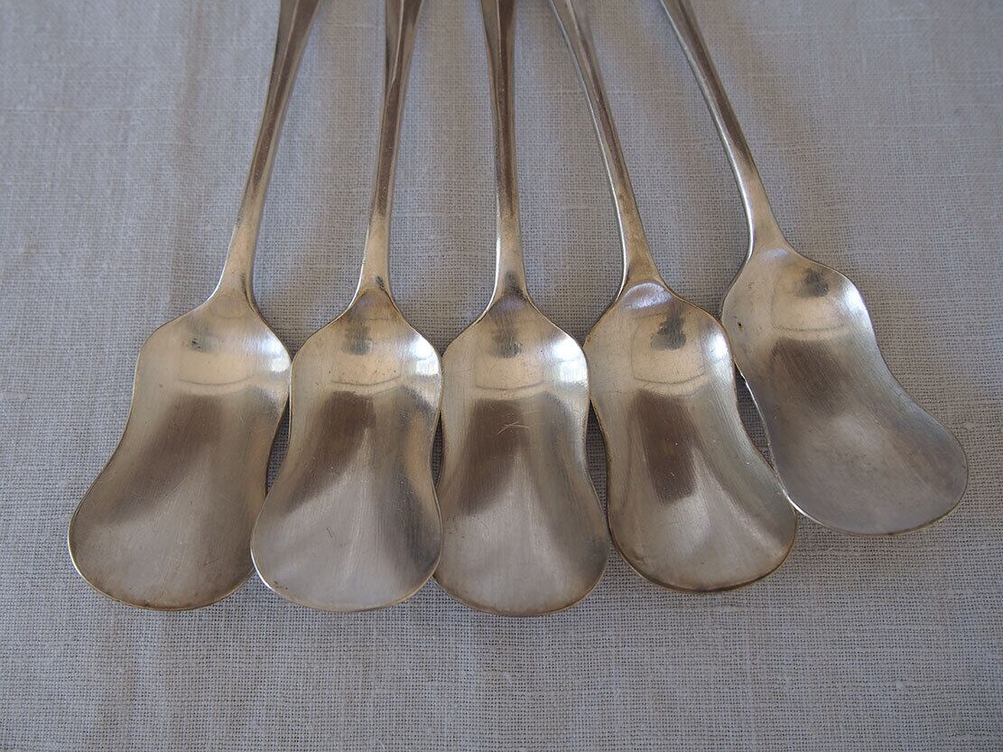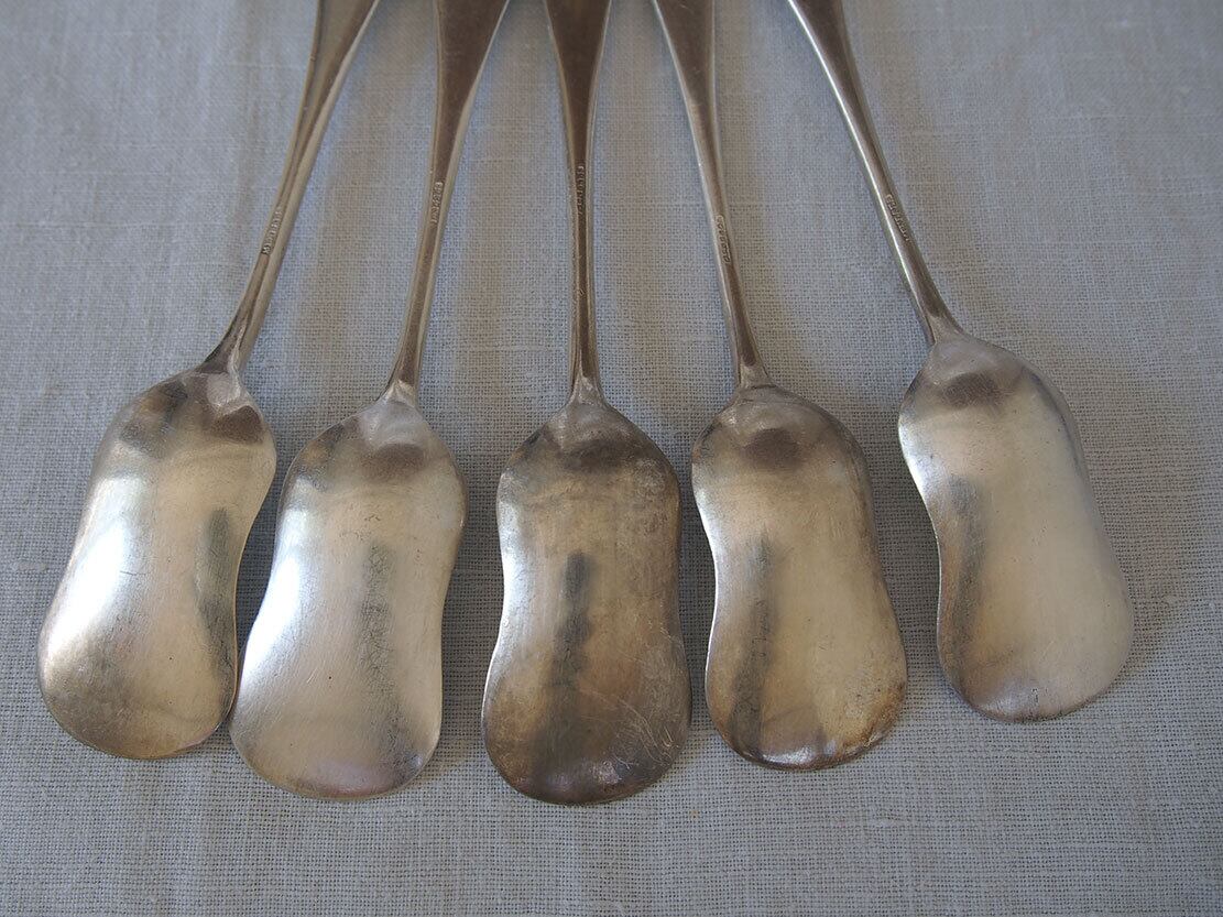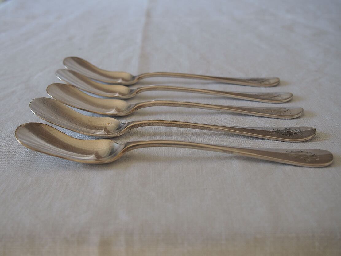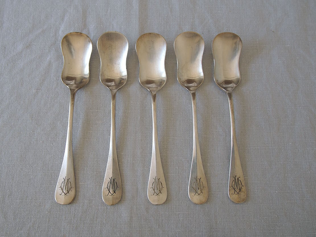 手彫りイニシャル入り シルバープレート アイスクリームスプーン5本 ホールマーク有り 1930年代 アンティーク カトラリー ヨーロッパ /K495