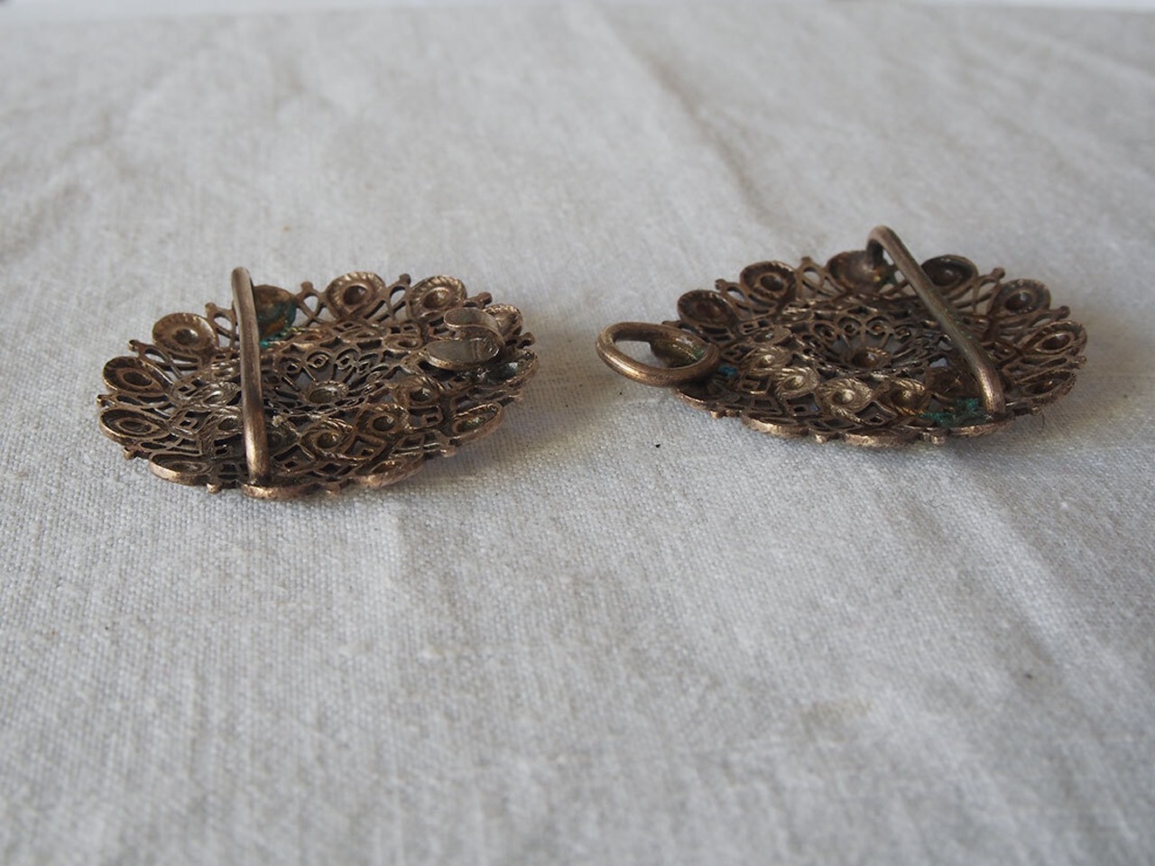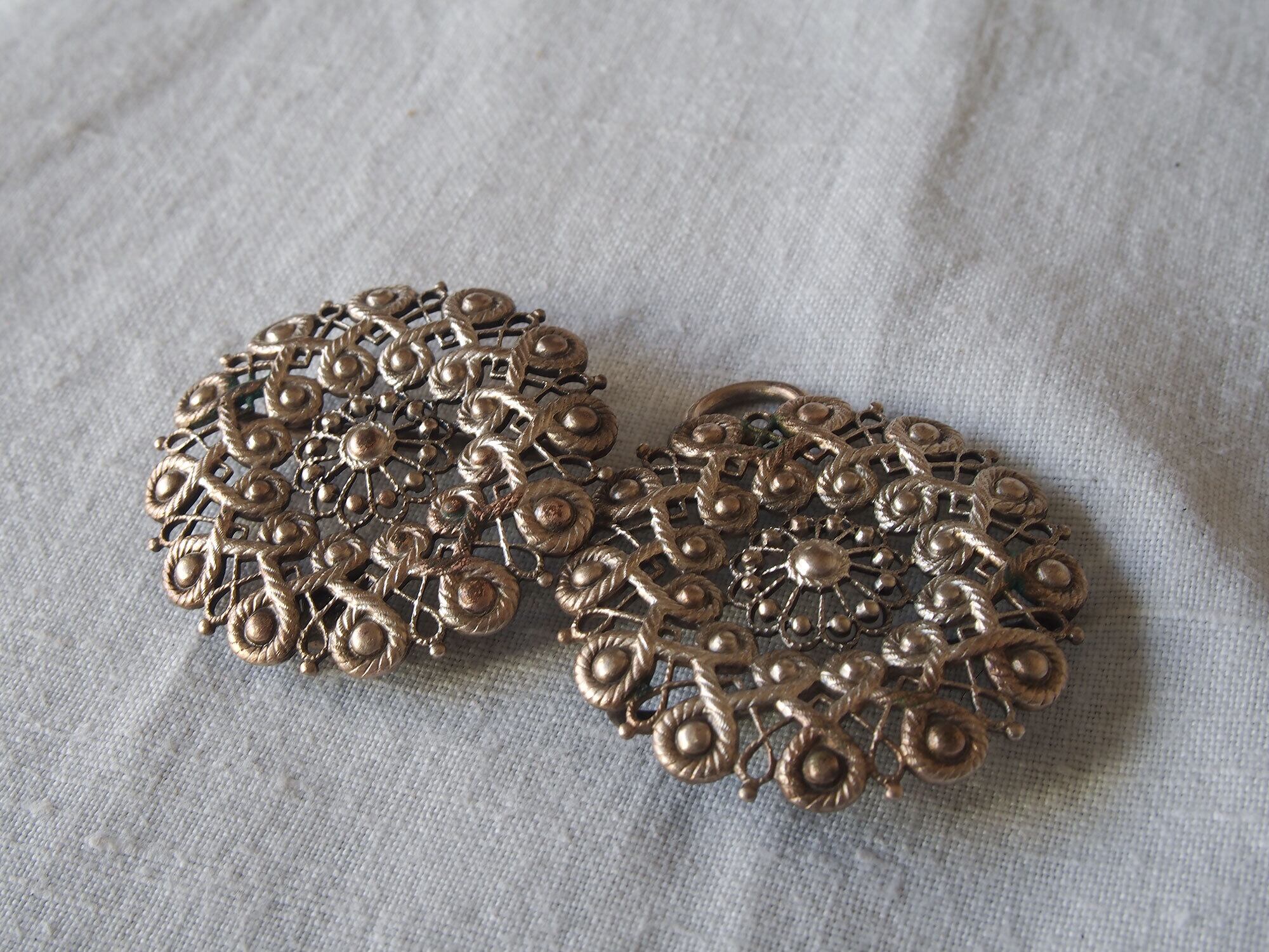 透かし装飾 フィリグリー風のバックル アクセサリー アールデコ コスチュームジュエリー アンティーク 1920〜1930年頃 ヨーロッパ /K509