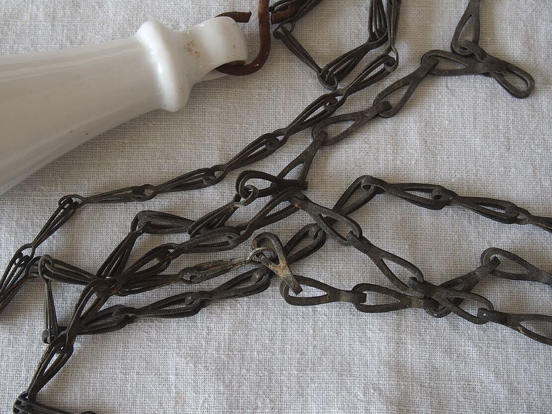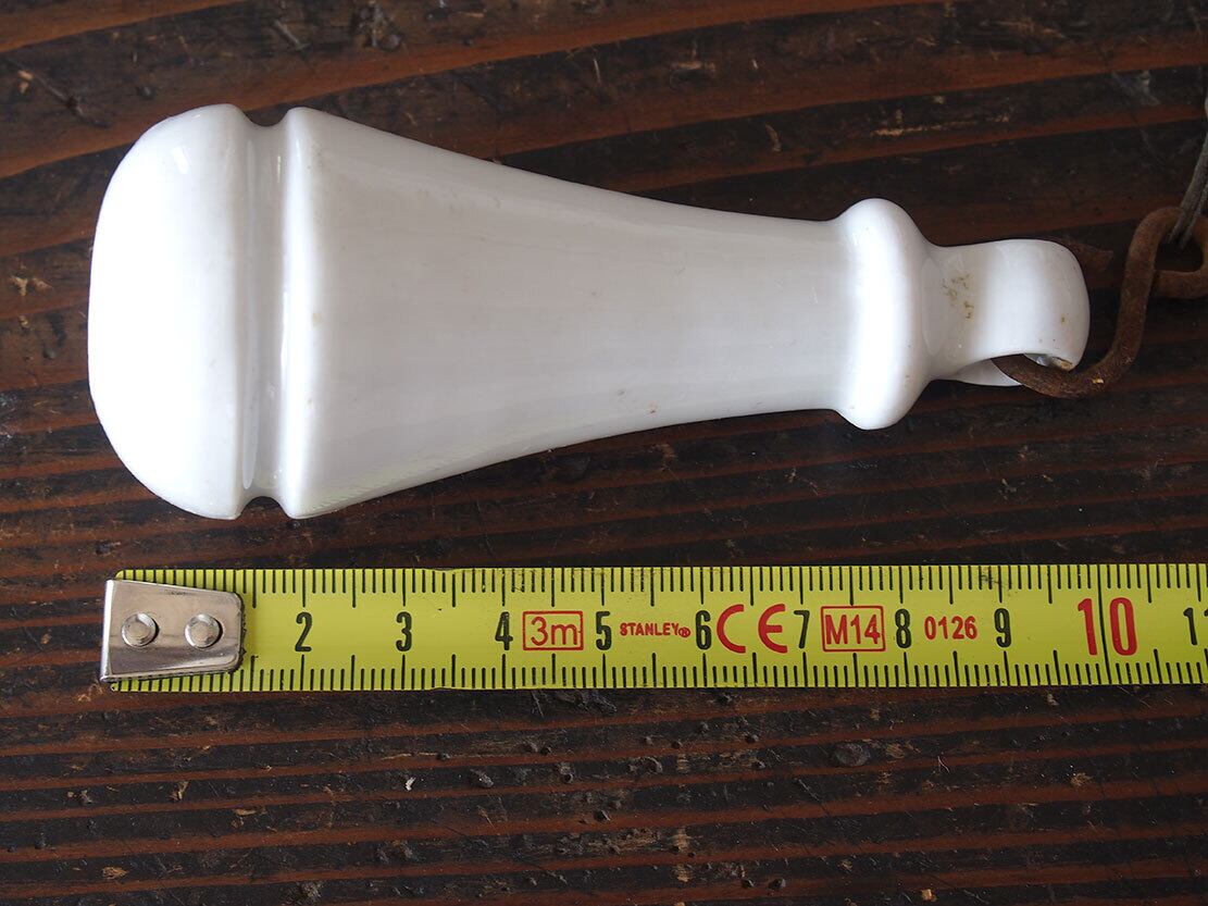 ヨーロッパの蚤の市で入手。1940年代ぐらいのチェーン付き陶器のトイレ用プルハンドル。 アンティークなインテリアのバスルームにぴったりです。そのほか工夫次第でいろいろな使い方ができると思います。醜いダメージはありません。コレクション、実用にいかがでしょう。